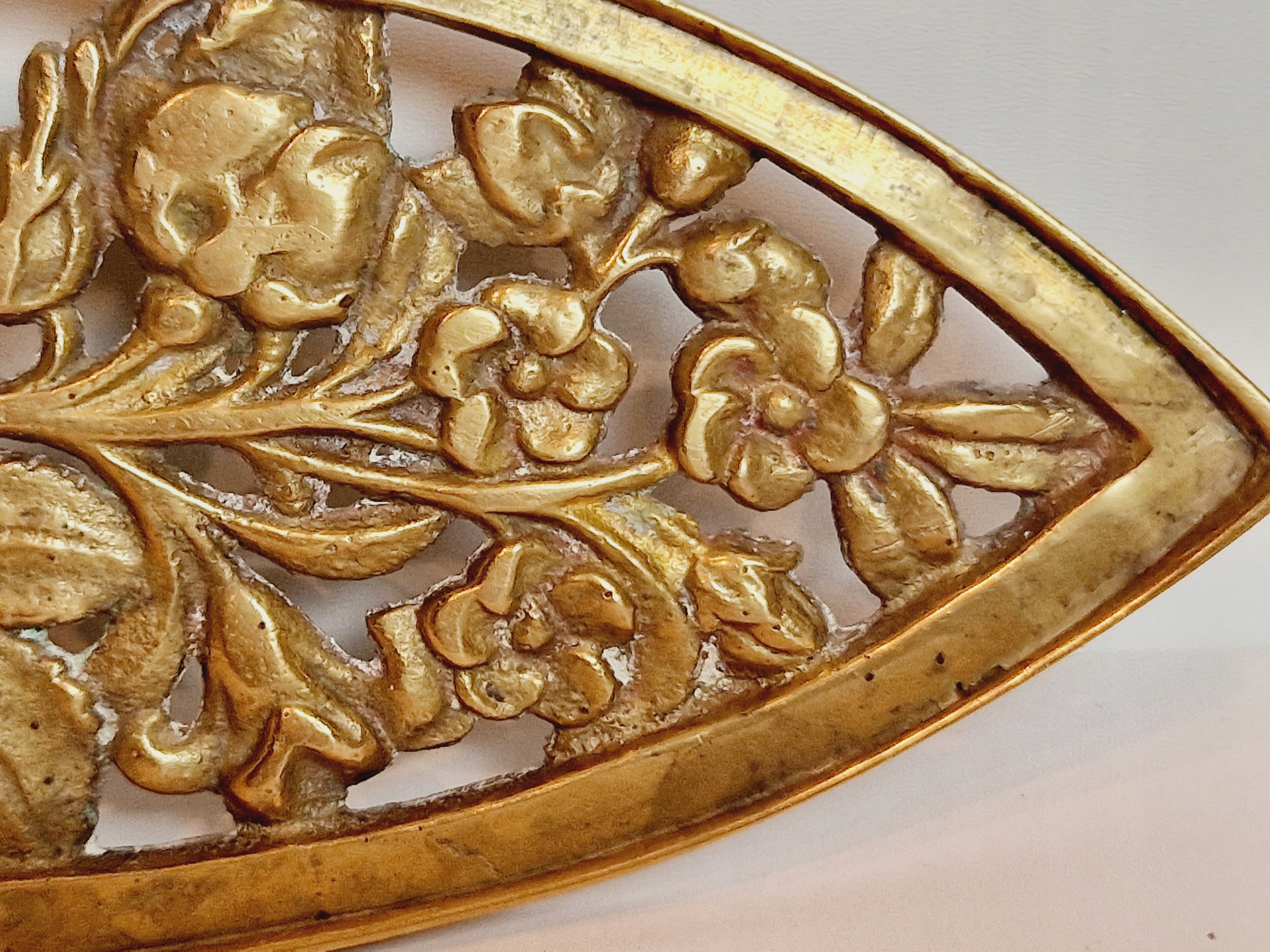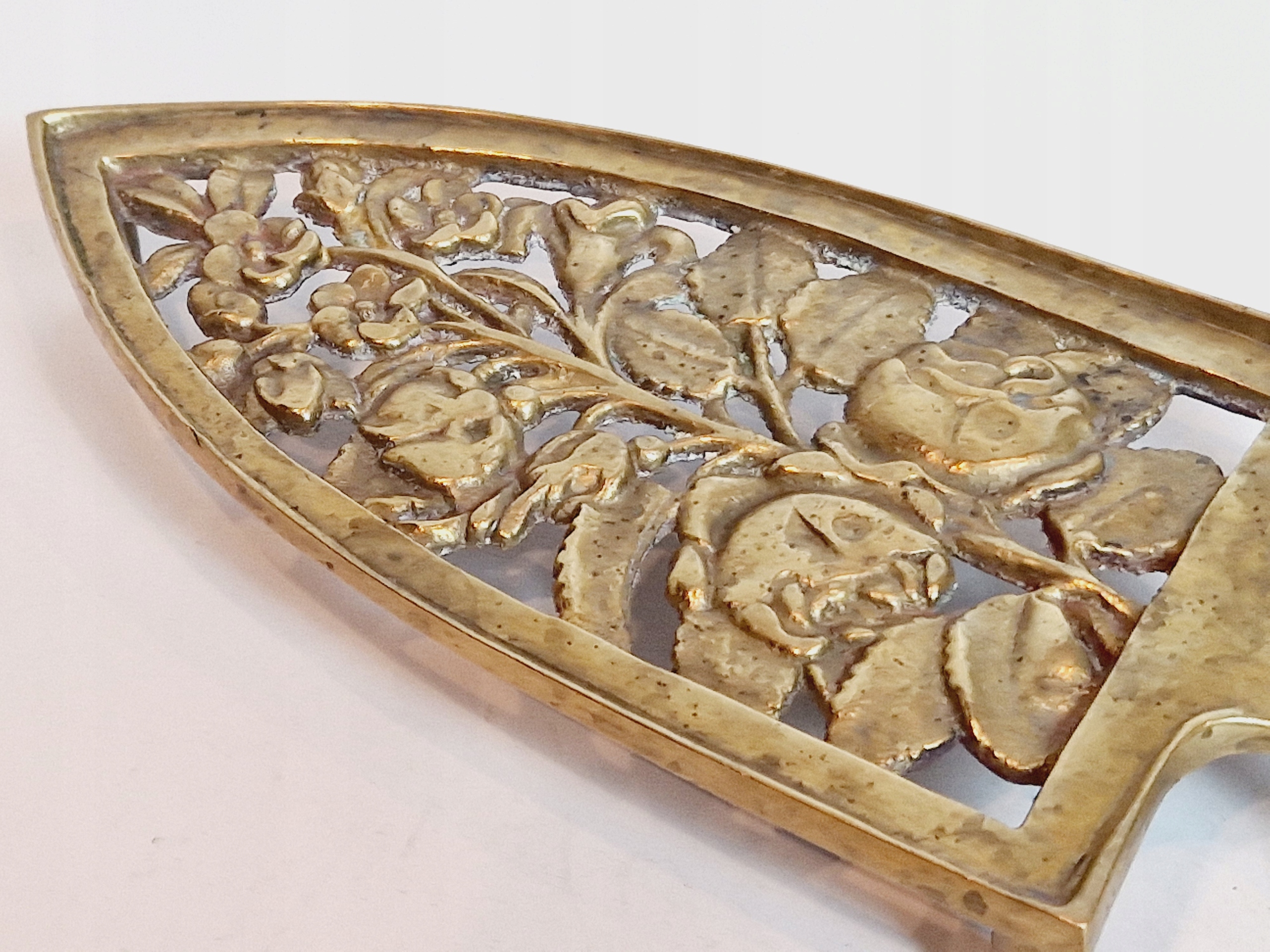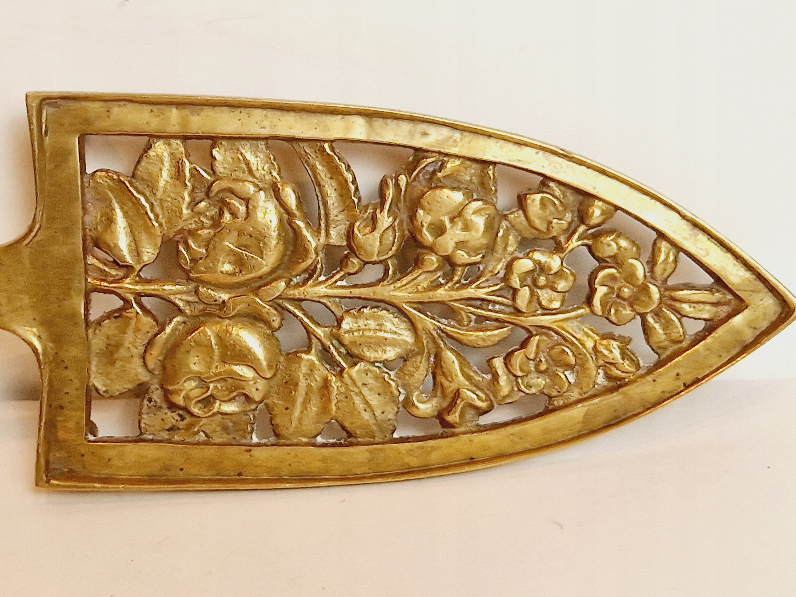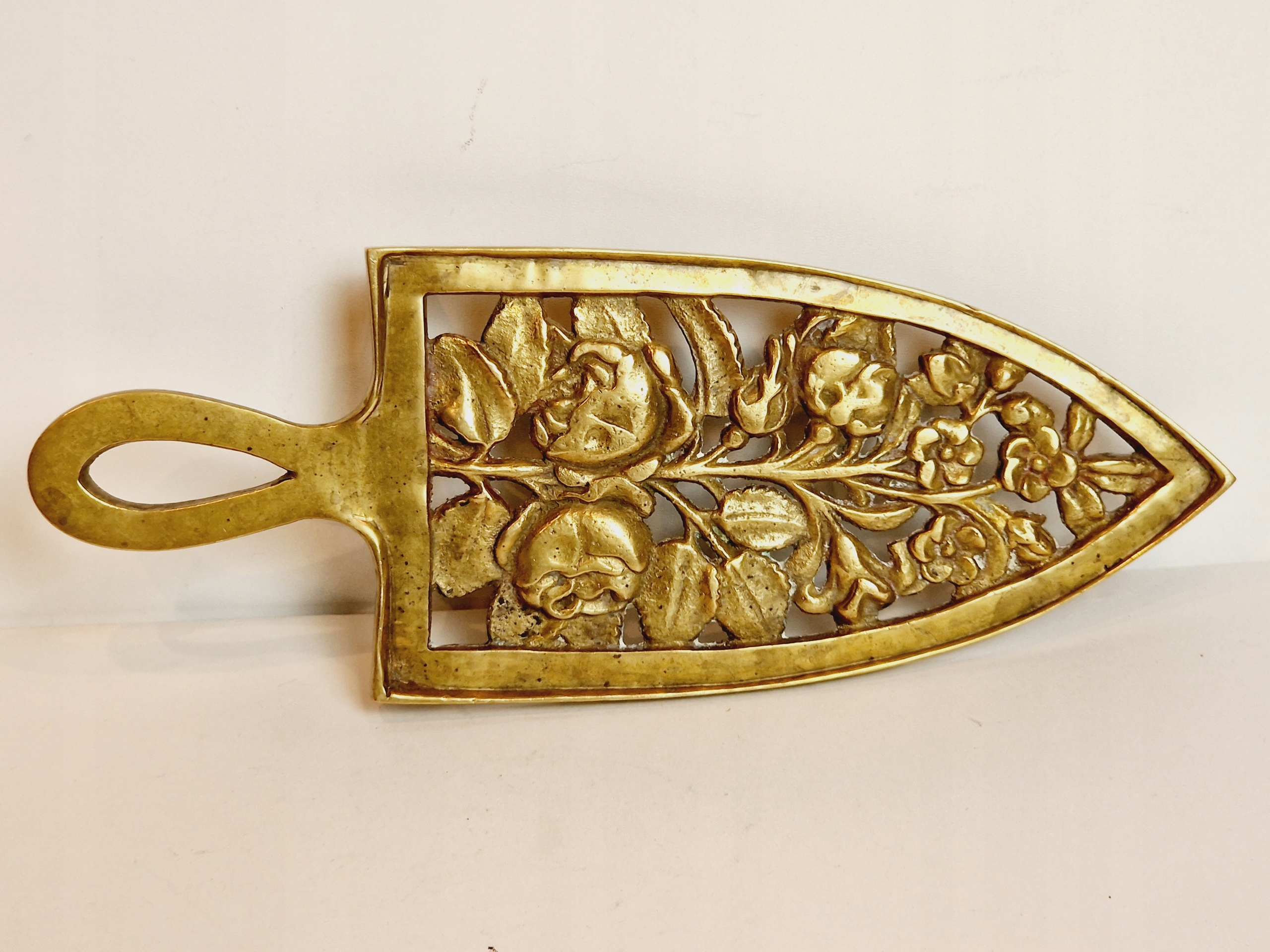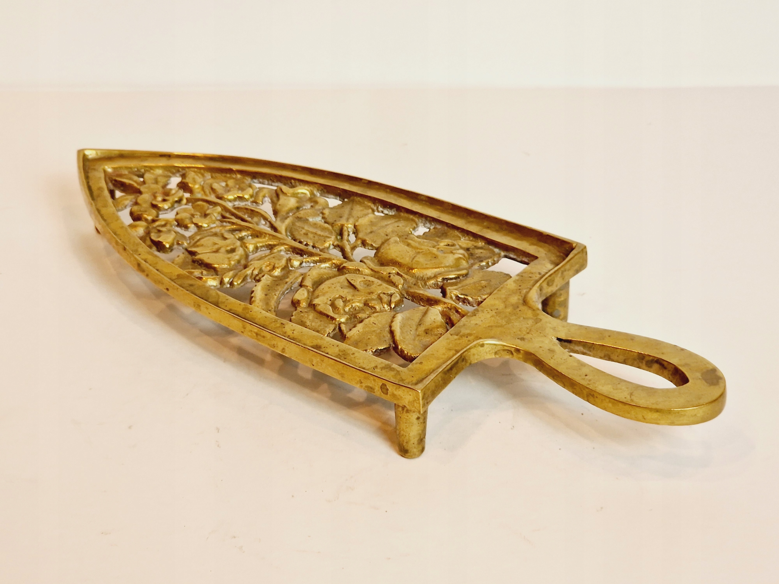 poł. XX w / MASYWNA (26,2 cm / 485 g) MOSIĘŻNA PODSTAWKA POD ŻELAZKO /837