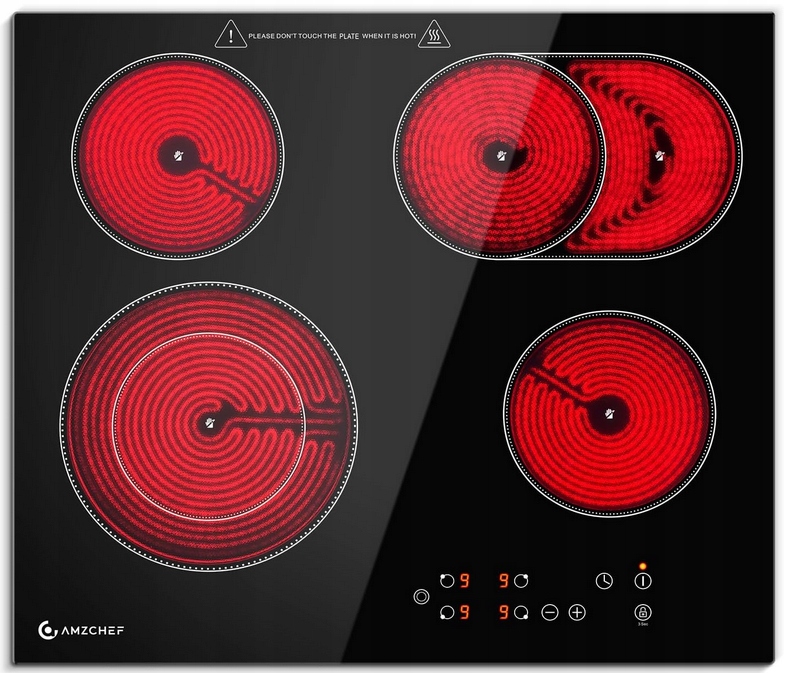 Амшеф зі скляної керамічної пластини 4 зони, побудована -60 см керамічна пластина з двома та овальними зонами барбекю, 9 рівнів потужності, перемикачем часу, блокуванням безпеки, захистом від перегріву, 6600 Вт