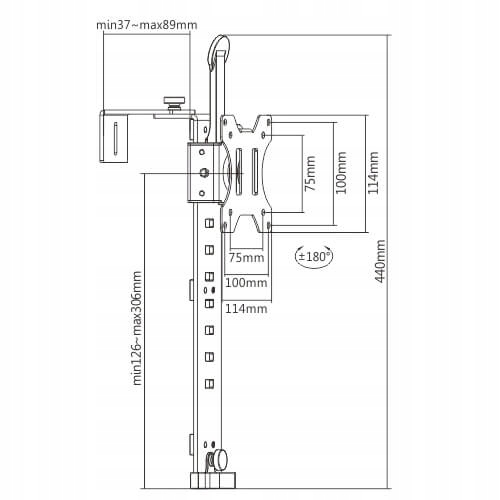 - Максимальна вага монітора: 8 кг регулювання в полях: 3 -к. 89 мм