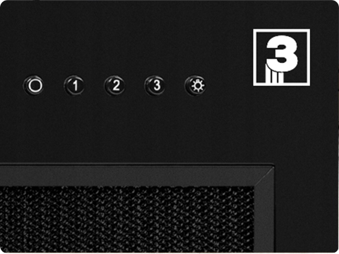 Надзвичайно інтуїтивно зрозумілі та прості у використанні кнопки Push-Push дозволяють ефективно вибрати один із трьох рівнів вентилятора. Елегантні срібні кнопки збільшують естетичну цінність пристрою, що робить його декоративним елементом нашої кухні.