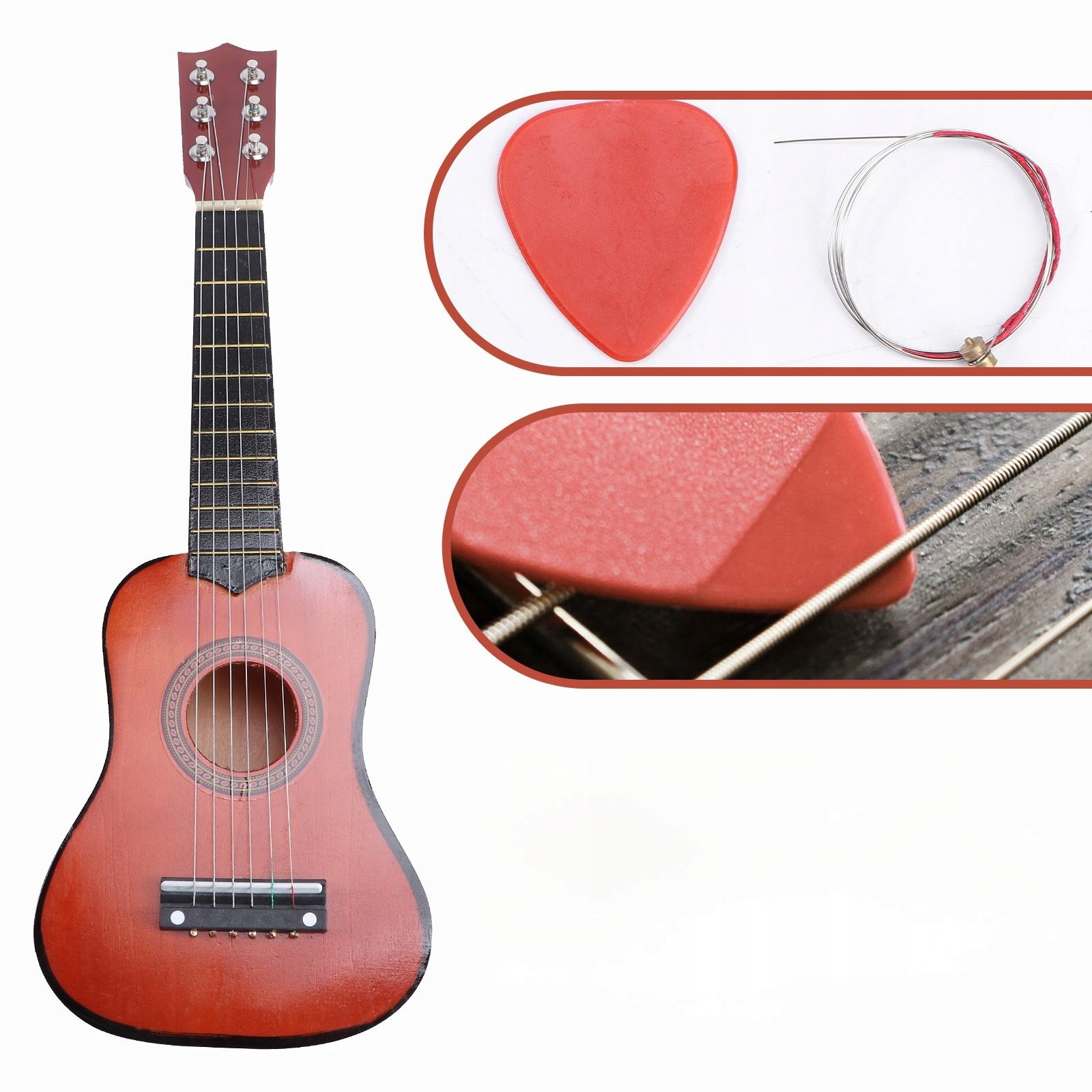✅Це 21-дюймова фолк-акустична гітара, розмір спеціально для молодих гравців. Він виготовлений з деревного матеріалу, стійкого до зношування, нелегкого для тріщин і твердого. & nbsp; Чудовий звук, комфорт і зручність гри. Це чудовий варіант для початківців, які хочуть навчитися грати на гітарі, і гарний вибір як подарунок для ваших друзів або родини.