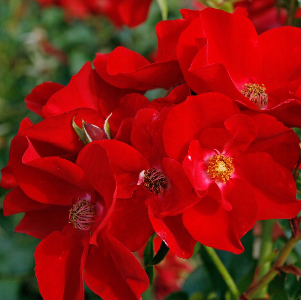 Почвопокривна троянда з виключно оригінальними квітами. Тривале і безперервне цвітіння, а також красиві червоні квіти, які не втрачають свого кольору, роблять його сортом, повз який ніхто не пройде байдужим. Додатковою перевагою цієї унікальної троянди є висока стійкість як до дощу, так і до сонця. Ідеально підходить для густих посадок. Кущ невеликий з міцними гілочками. Має високу стійкість до хвороб.