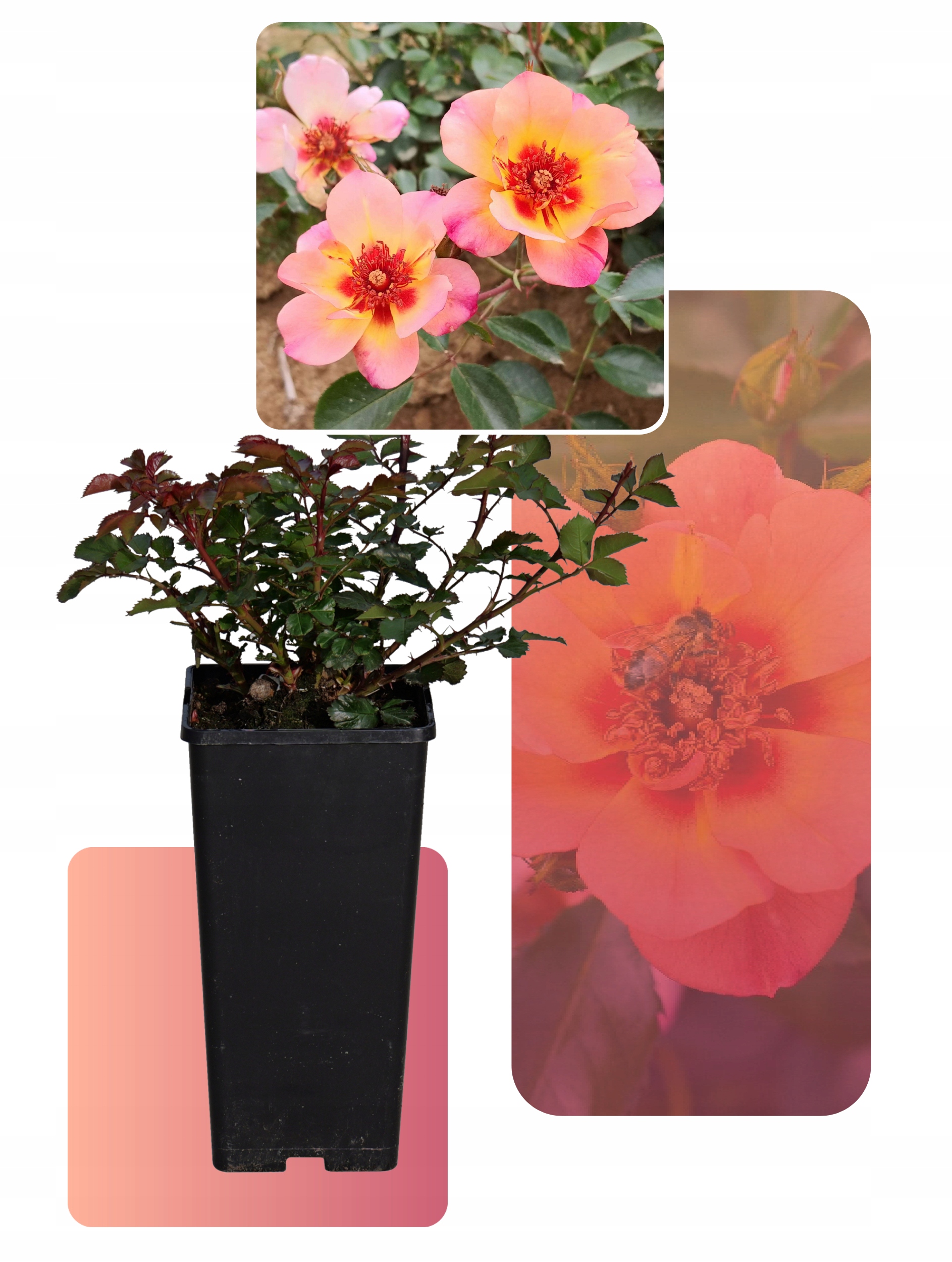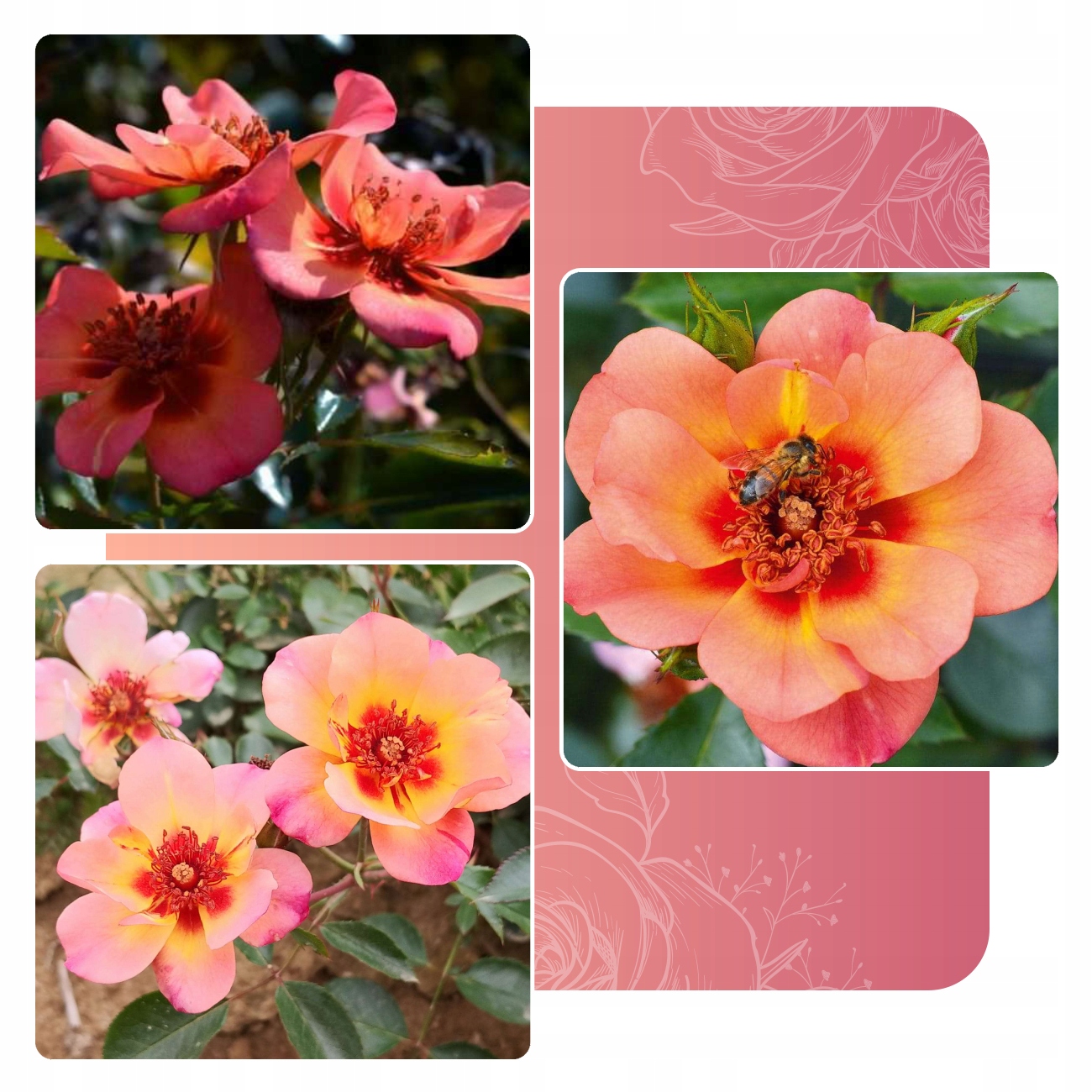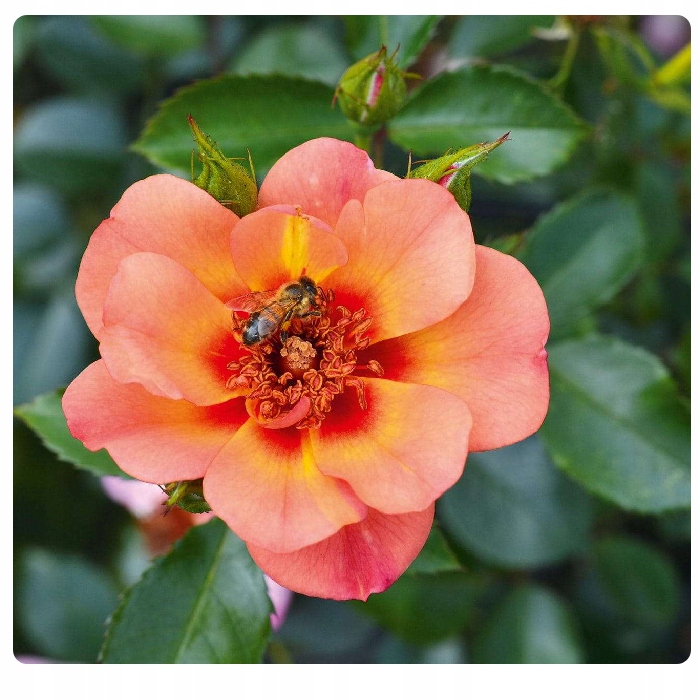 Теплі квіти з темнішим центром приваблюють багатьох корисних комах. Троянда починає цвісти рано, тому ми можемо насолоджуватися першими квітами в травні, а це також означає, що вона, швидше за все, буде цвісти тричі на рік.