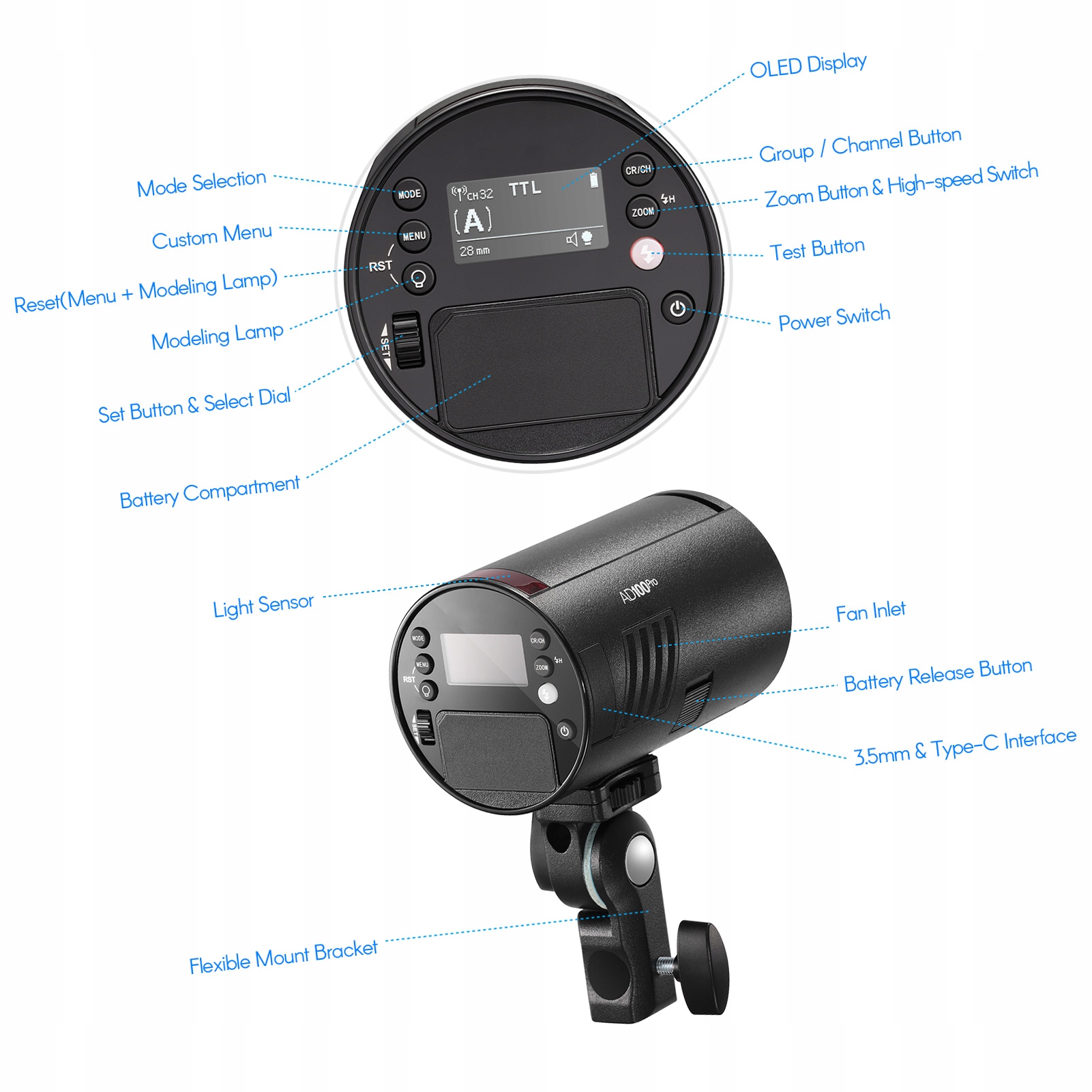 6. Широка програма: потужне та портативне AD100PRO відповідає вимогам незалежних комерційних фотографів, фотожурналістів, весільних та пляжних портретних стрільців, фотографів з подій та рюкзаків, любителів фотографії тощо