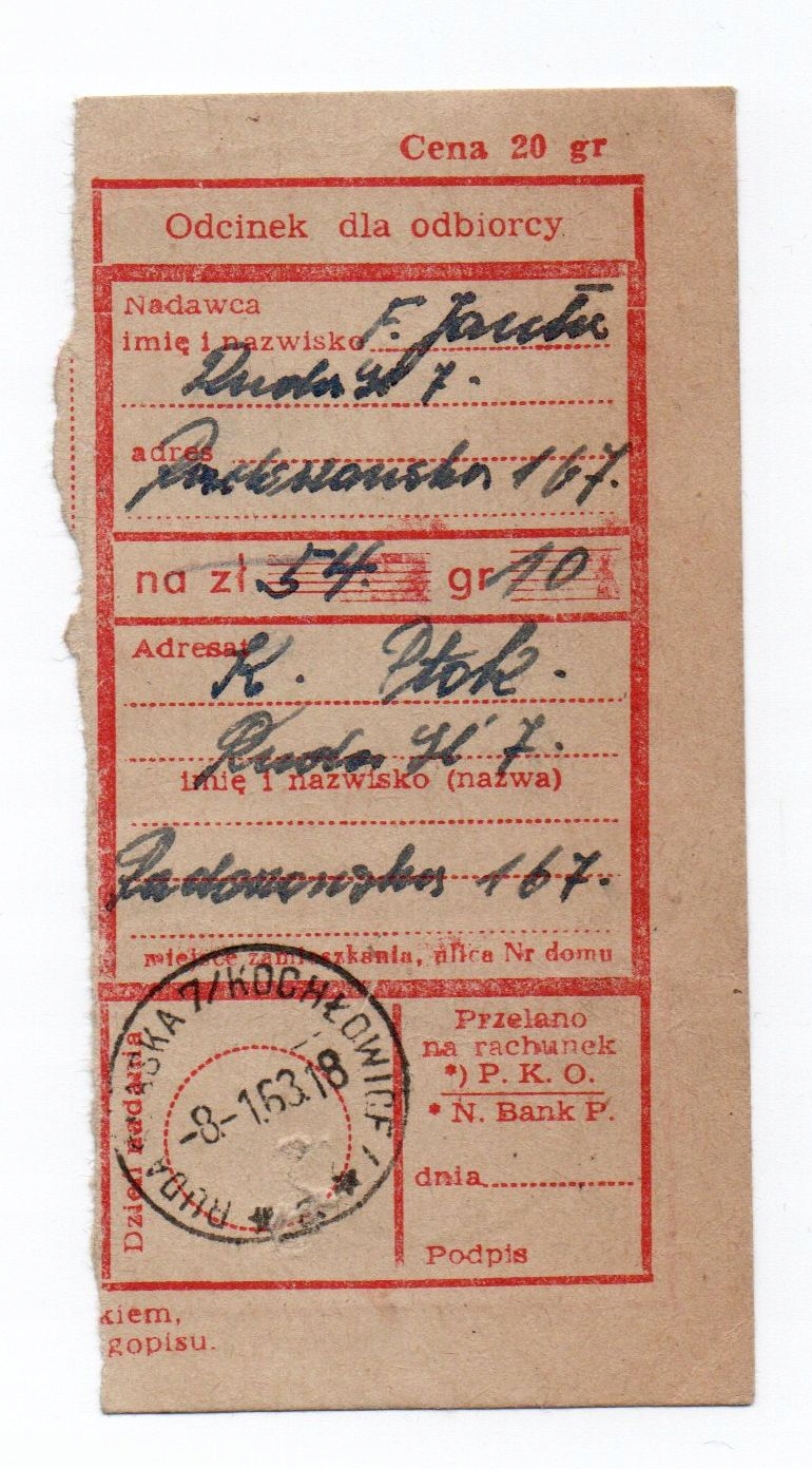 POCZTA RUDA ŚLĄSKA 7 KOCHLOVICE 1963 ПОШТОВИЙ ПЕРЕКАЗ