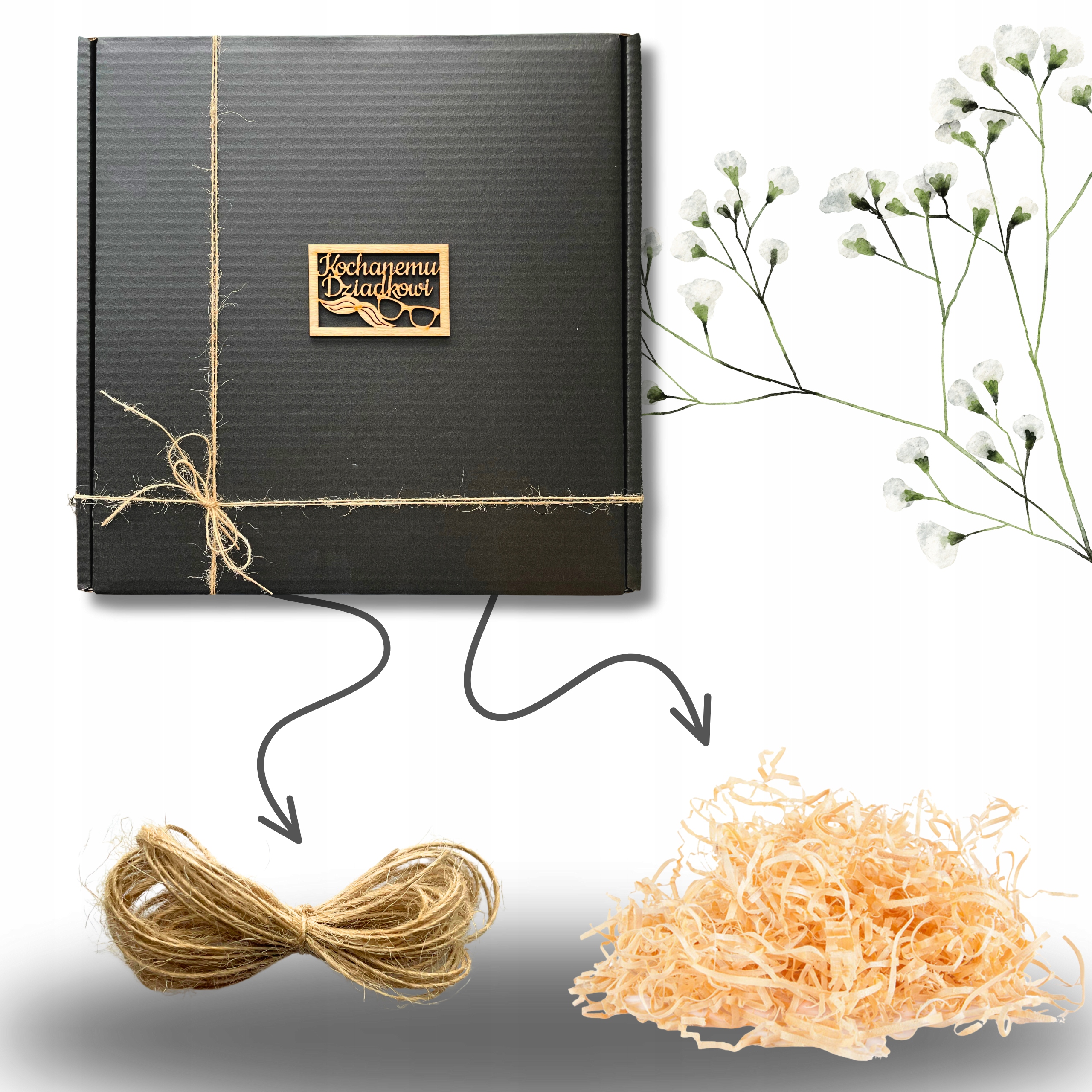 Кожен любить дарувати унікальні подарунки, а їх упаковка – це момент, сповнений емоцій. При замовленні нашої подарункової коробки Ви безкоштовно отримуєте дерев'яну прикрасу - напис та шнурок для зав'язування коробки та деревну вовну, що додасть подарунку ще більшого шарму.