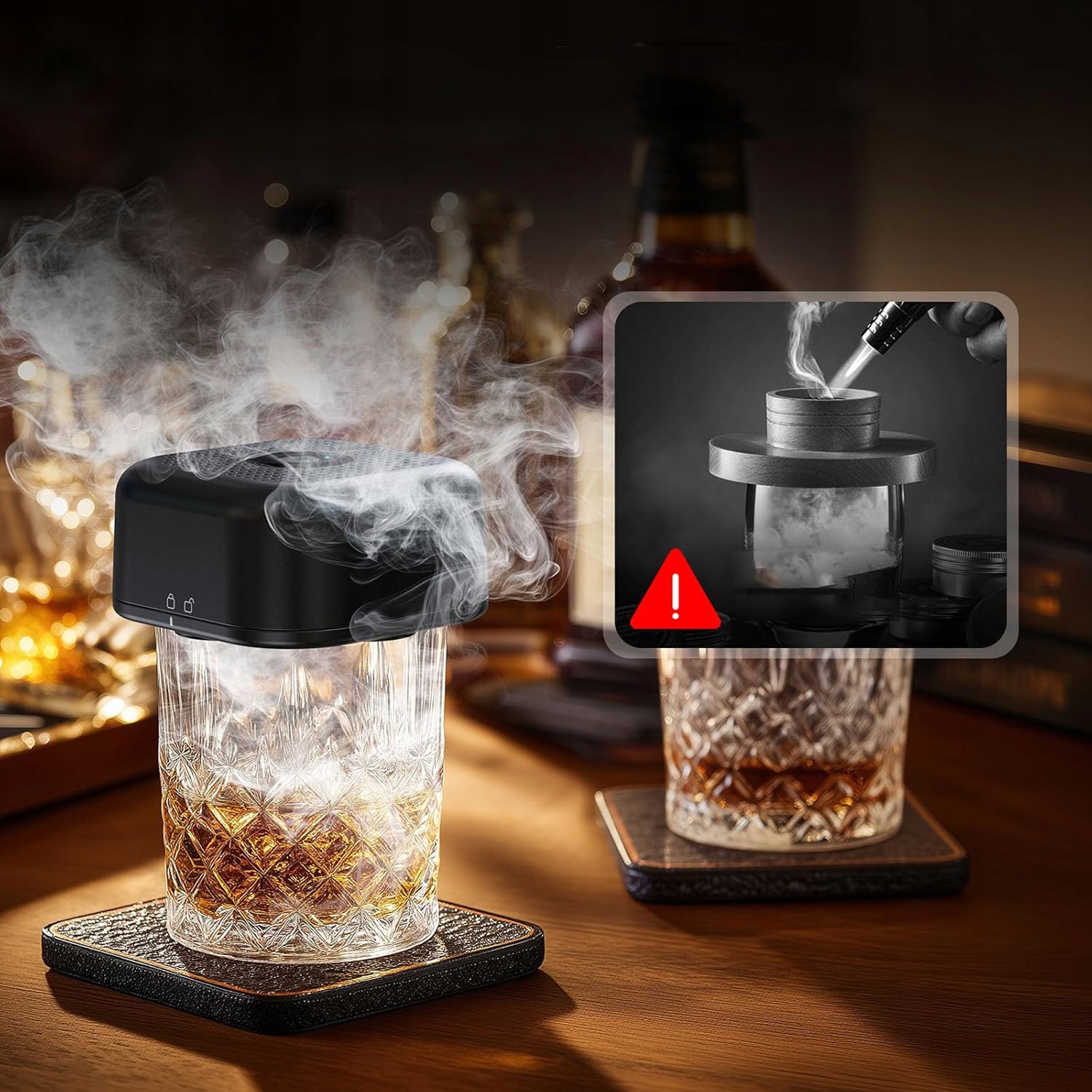 Забезпечує унікальну смакову подорож. Подібно до того, як коктейльна машина створює різноманітні напої, вона дозволяє вам персоналізувати димний смак вашого віскі за допомогою різноманітної деревної стружки, наприклад, деревини яблуні, вишні та дуба. Це збагачує смакові відчуття, додаючи глибини та привабливості. Ідеально підходить для любителів віскі, які шукають щось нове.