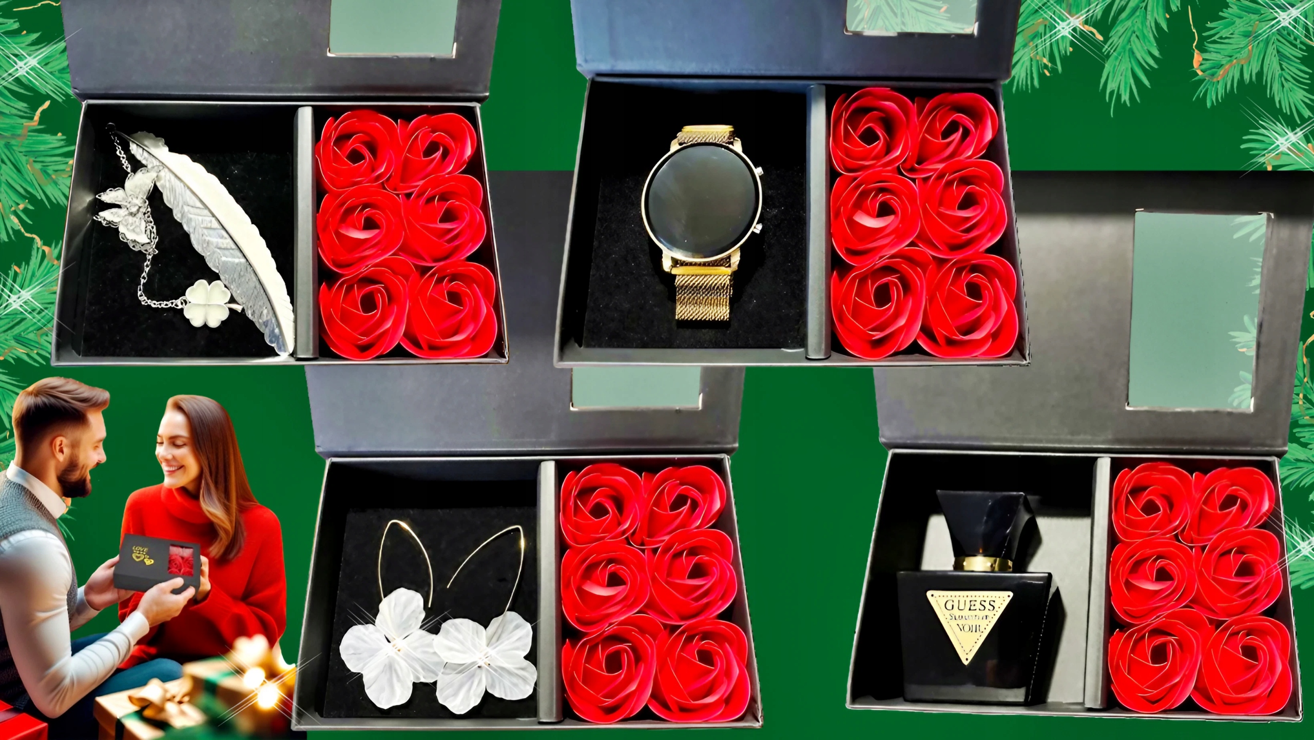 ДИВІТЬСЯ НИЖЧЕ, ЩО РІЗНІ АКСЕСУАРИ МІСТИТЬ У Скриньці - ГОДИННИК, КУЛОН, СЕРЕЖКИ, 30 МЛ ПАРФЮМИ.