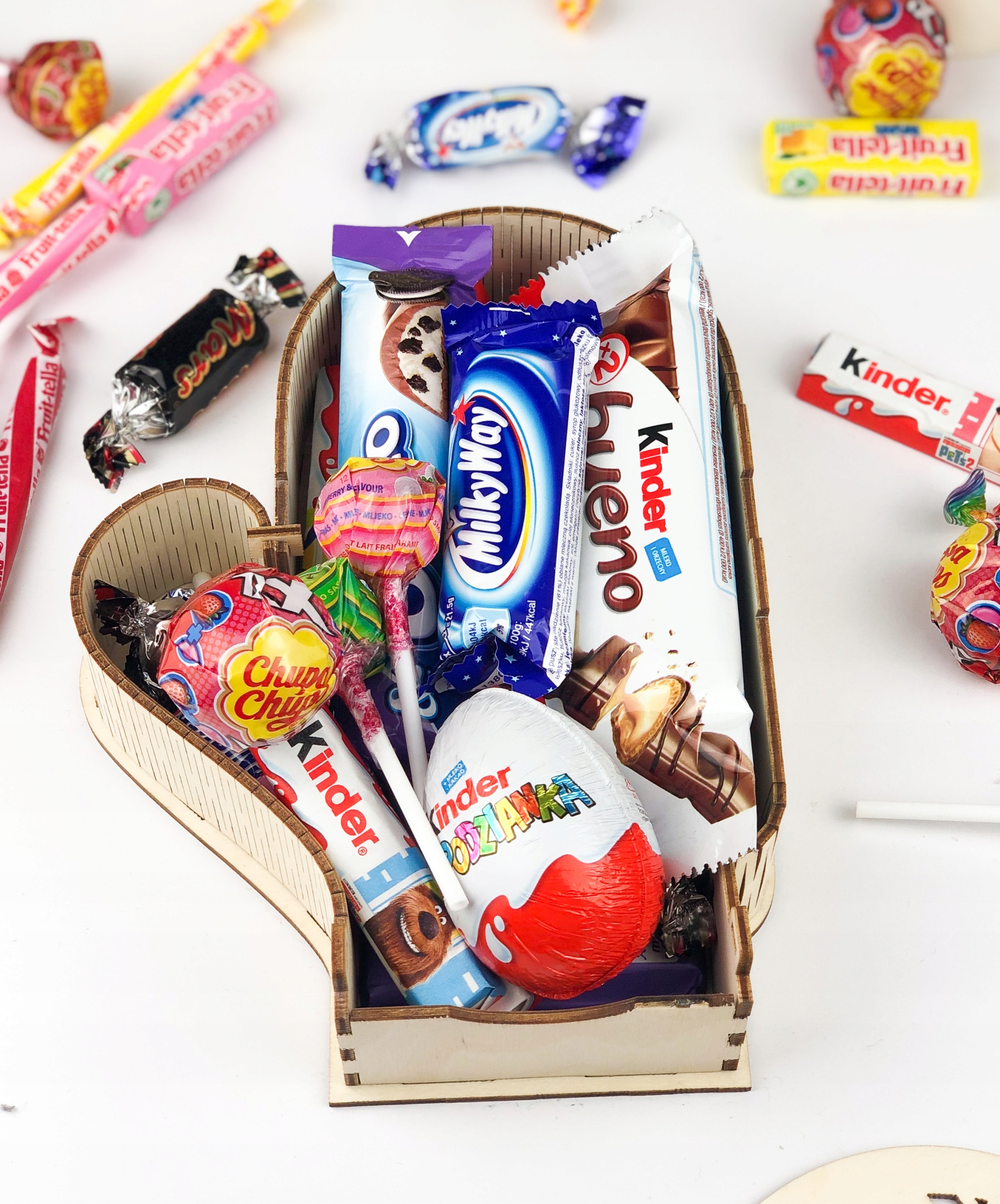 Подаруйте своїй дитині або близькій людині її улюблені цукерки, упаковані в елегантну рукавичку.