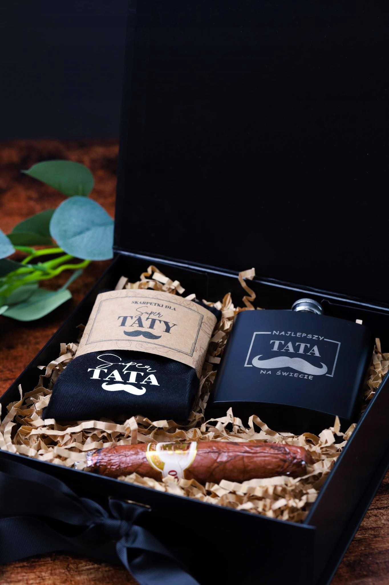 - Коробка з принтом «Найкращий тато у світі», наповнена декоративним папером,