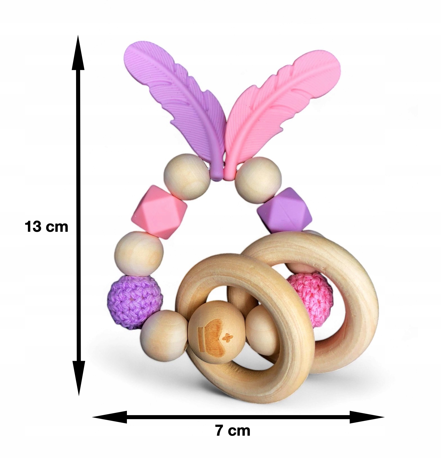 - брязкальце/ Прорізувач для зубів і підвіска-пустушка створюють нероздільний гарний комплект. Виготовлений з деревини бука, силікону та органічної бавовни. Незамінний під час прорізування зубів.