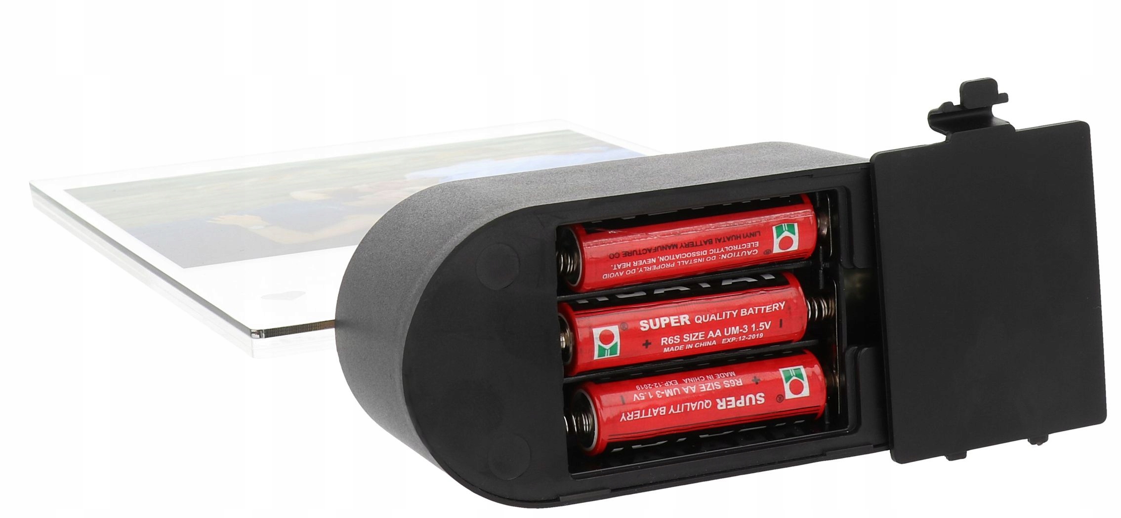 Рамка живиться від батарейок (3 x R6 AA популярних ручок) або від кабелю зі штекером типу "B" (не входить до комплекту)