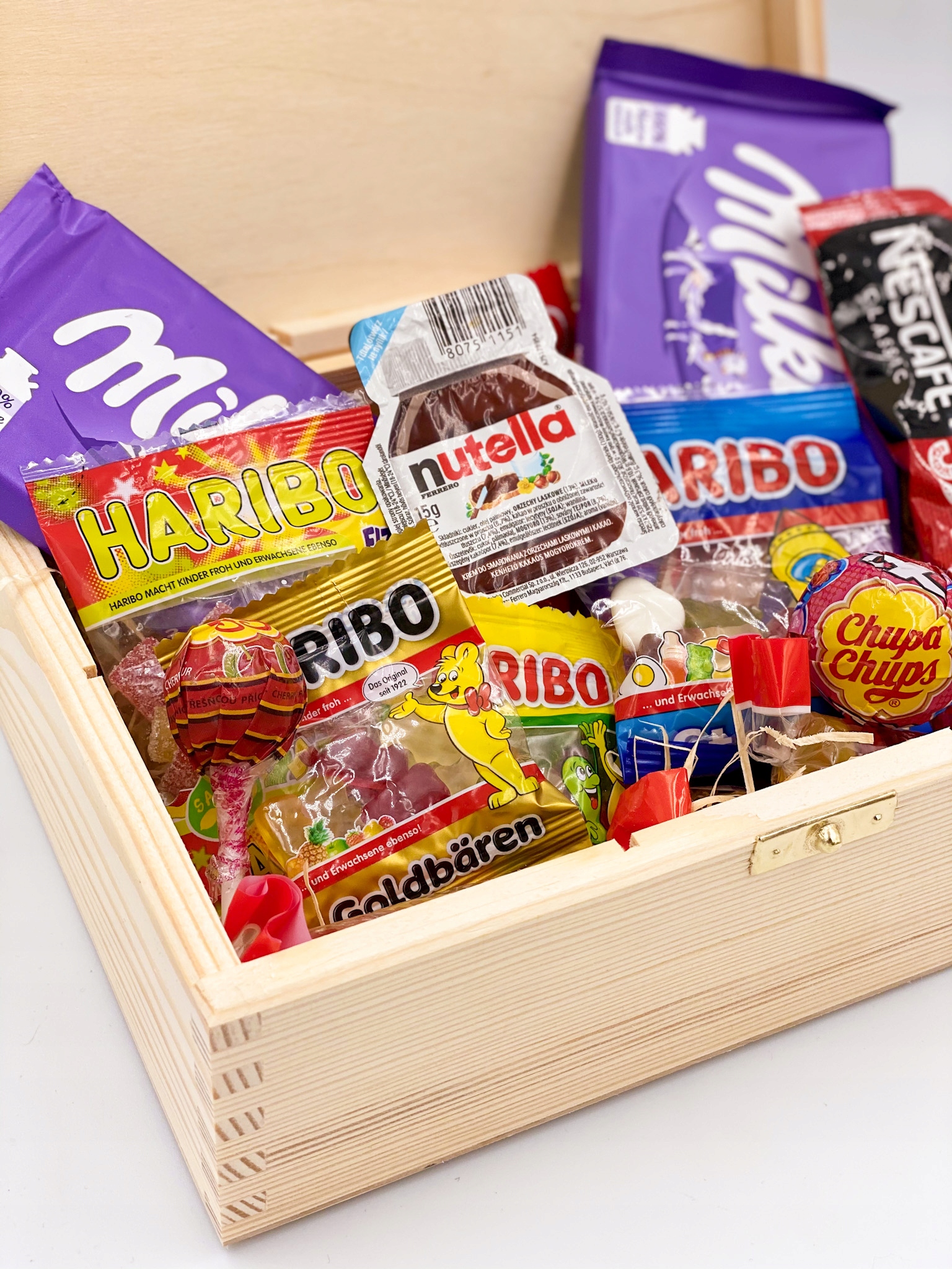 Дерев'яний ящик, наповнений деревною ватою. Це ідеальна ідея подарунка, наприклад, до Дня Святого Миколая чи Різдва.