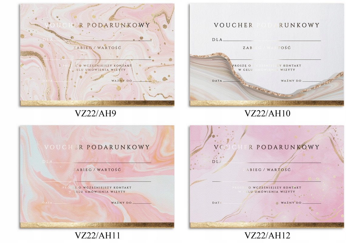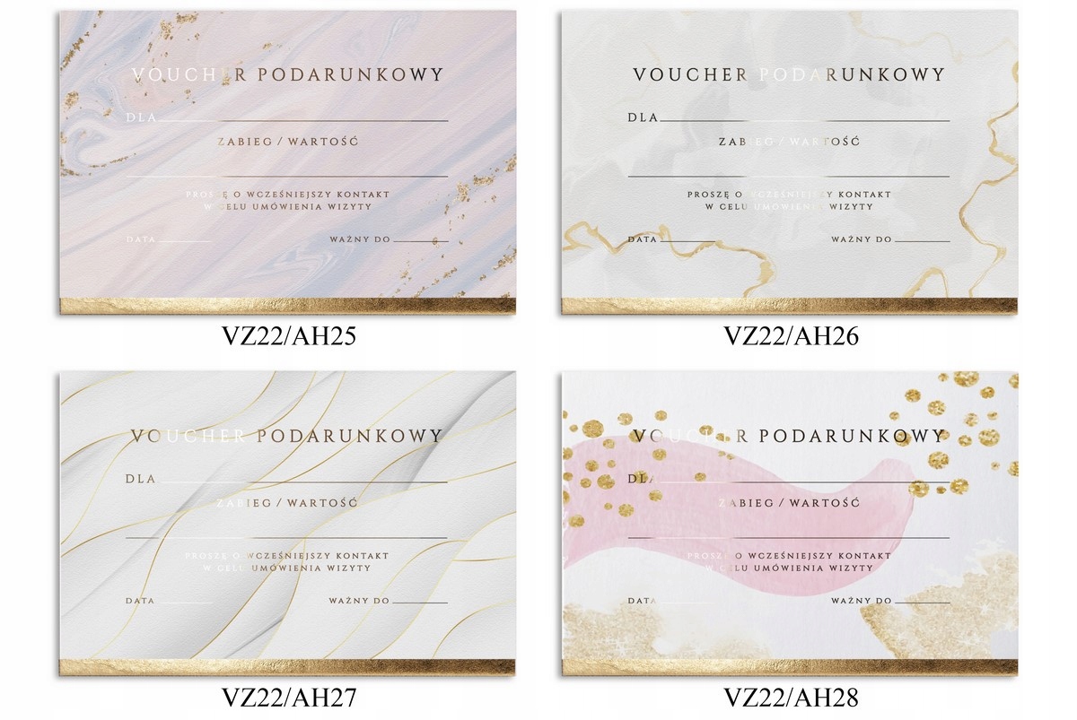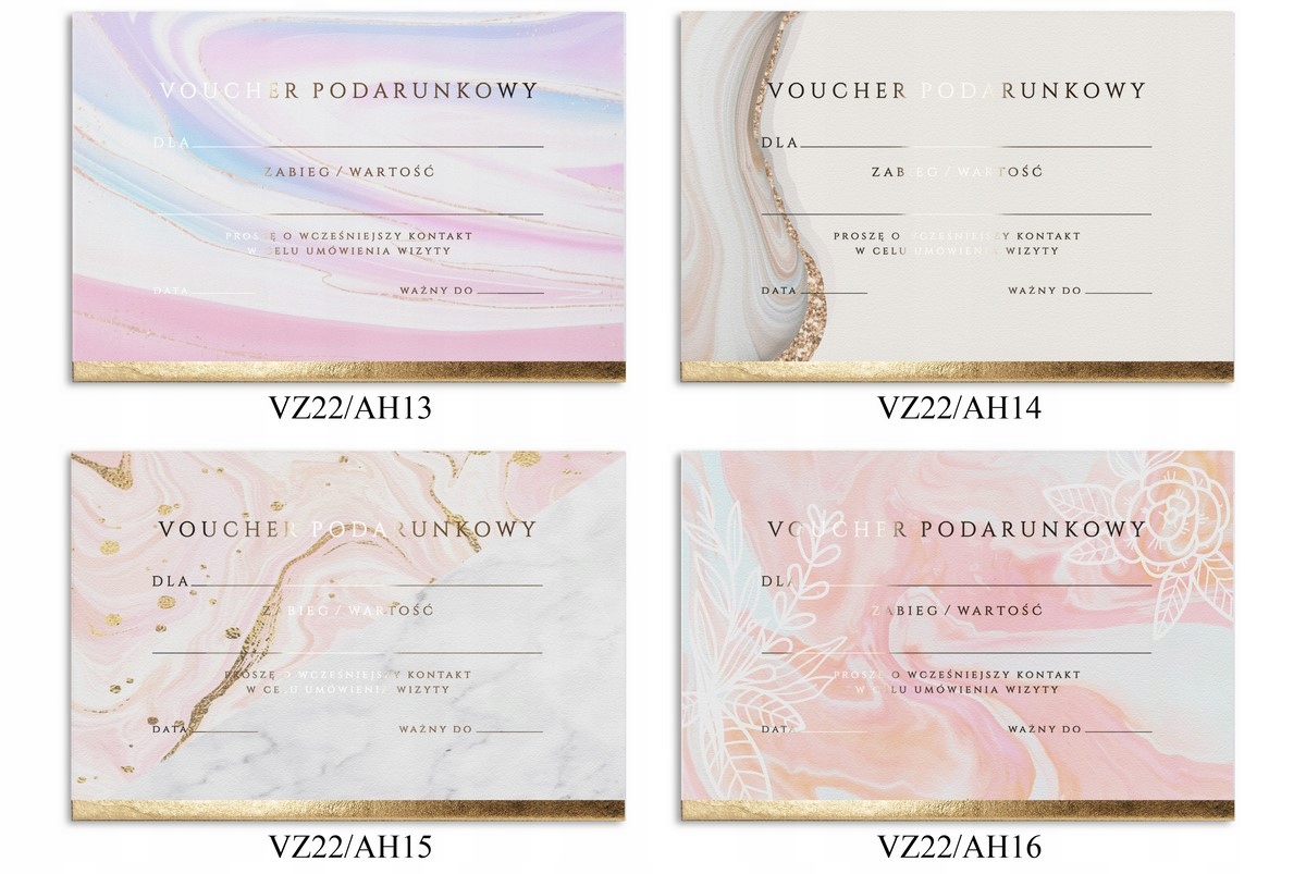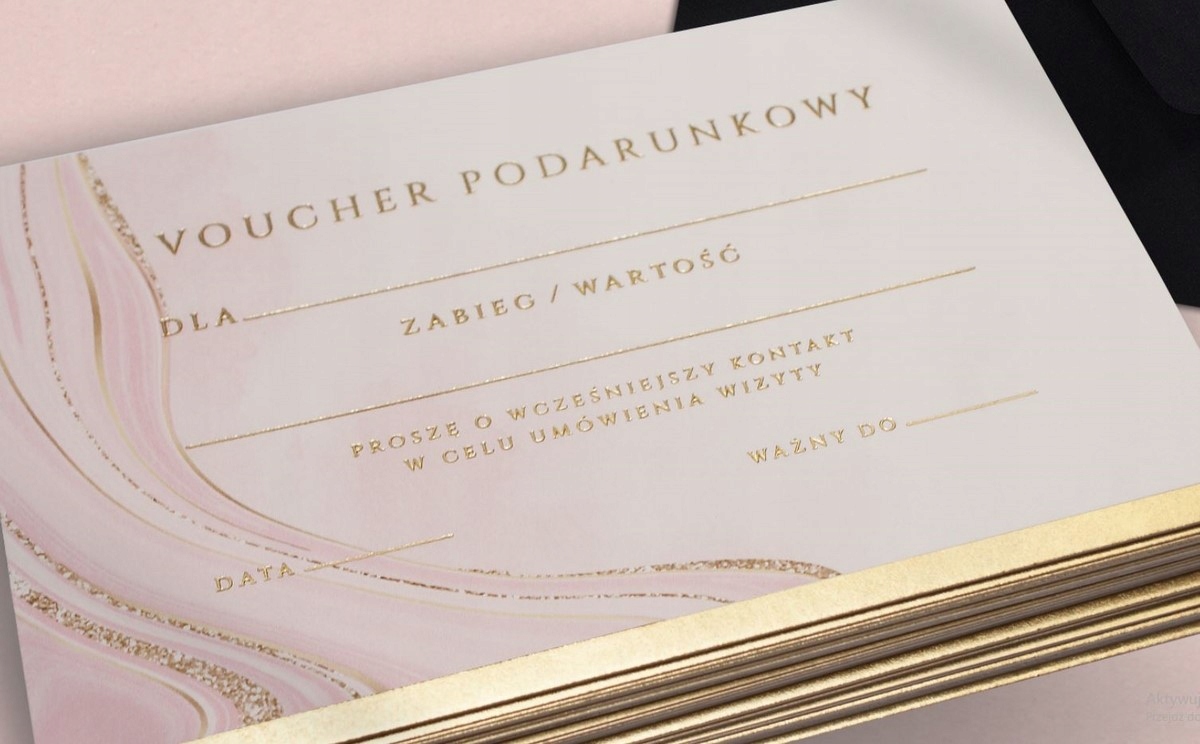 1) ваучер із кольоровим принтом і позолоченим текстом