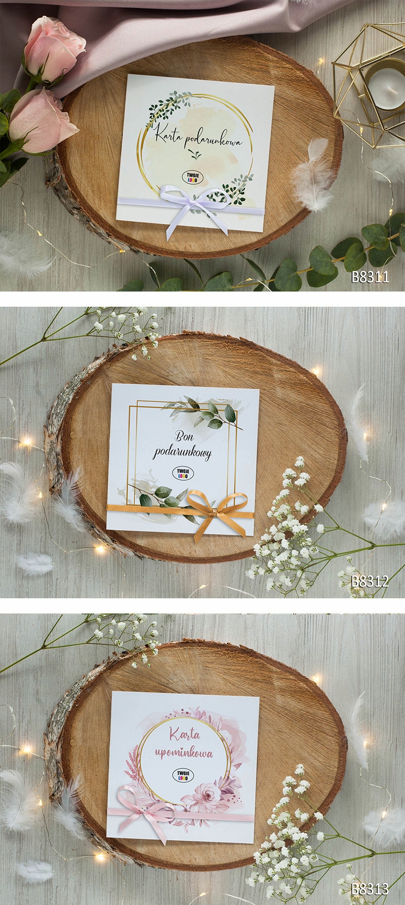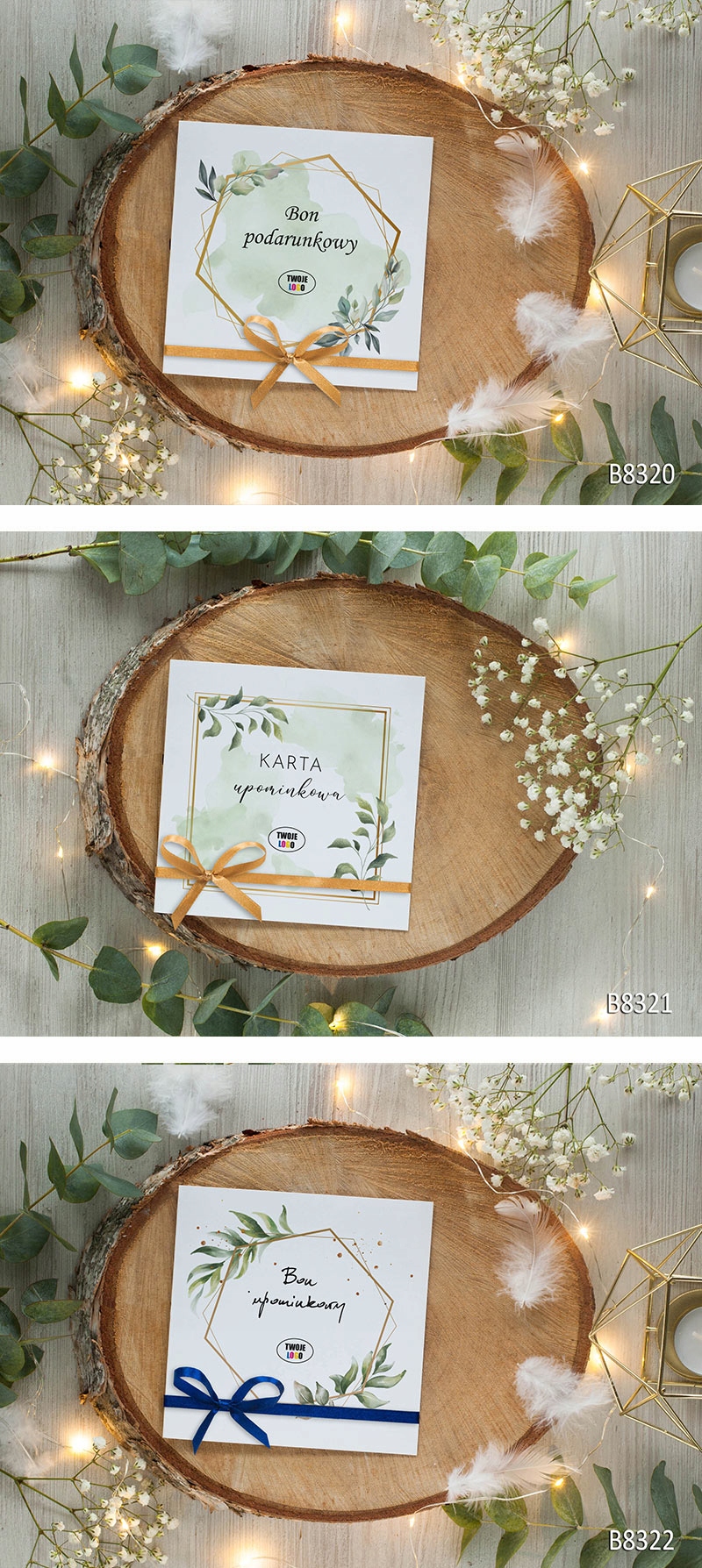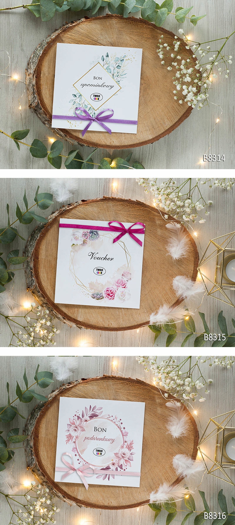 - Ви можете вирішити, як зав’язати ваучери – збоку, на внизу або вгорі. Стрічка легко зав'язується (як шнурки). Додайте стрічки приблизно 0,6 м/шт. якого достатньо для будь-якого виду обв'язки