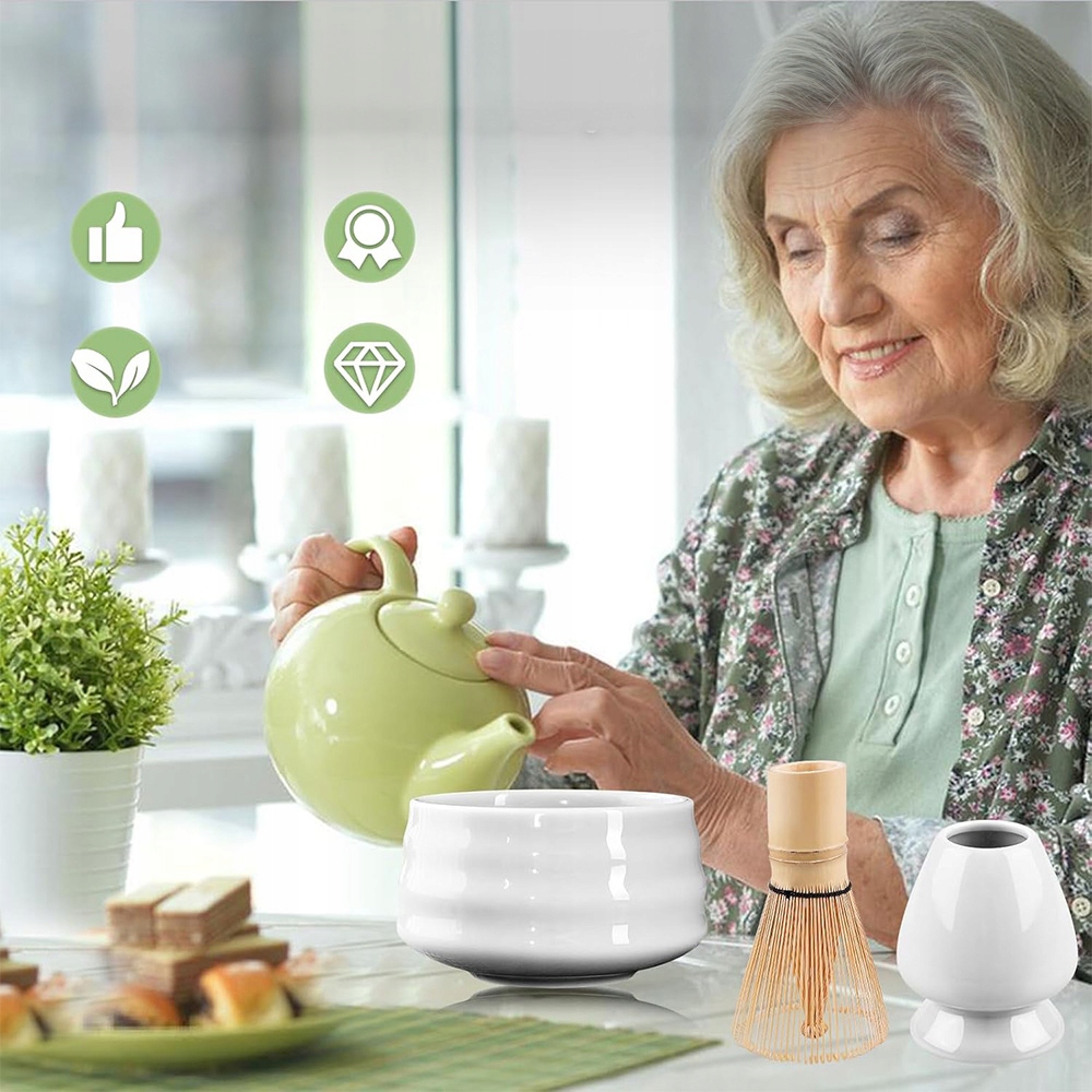 - Використання традиційного чайного набору матча дає змогу покращити ваш досвід матча. Цей набір миски та віночка для матчі містить усі необхідні інструменти для приготування чаю матча в традиційному стилі. Використовуйте наш набір віночків матча та створіть заспокійливу та медитаційну атмосферу, яка сприяє розслабленню та уважності.