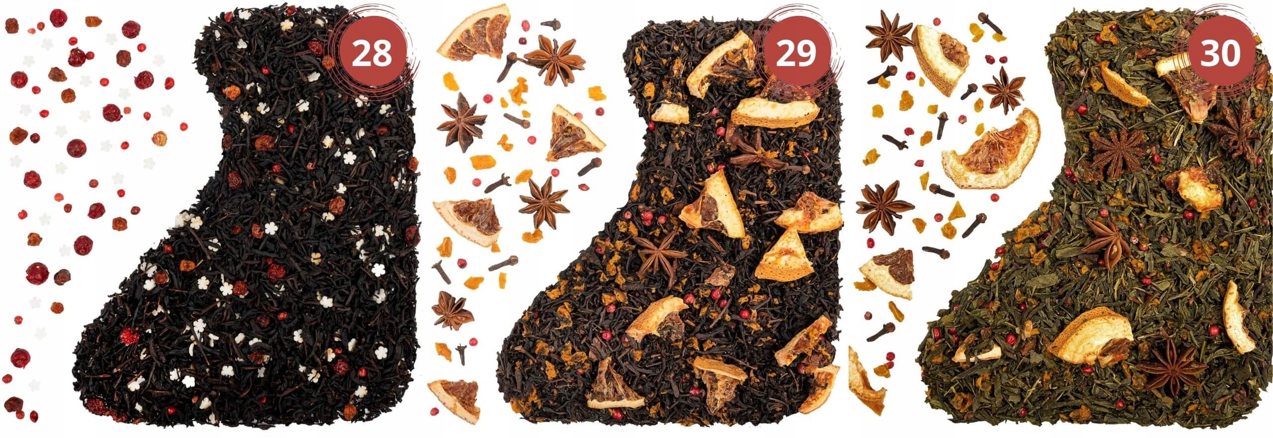 - 29. «Магія Різдва» (35г):Чай чорний, сушений грейпфрут, манго (концентрат манго), аніс, гвоздика, перець червоний, аромат.