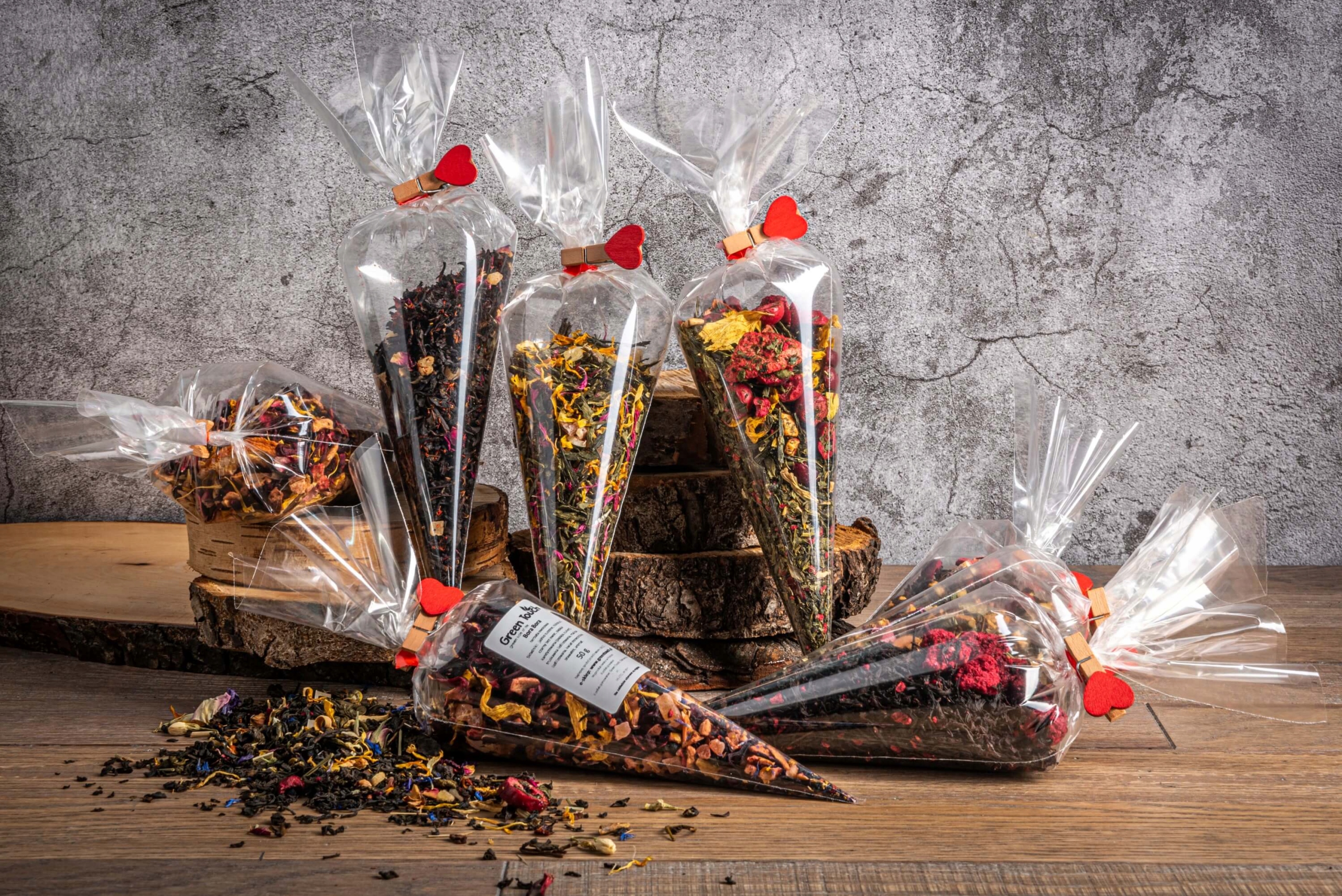 Целофанові чайні ріжки — наш перевірений спосіб зробити цікавий подарунок або подарувати з будь-якої нагоди. Цікаво закритий чай – запорука задоволення та посмішки того, хто отримує подарунок.