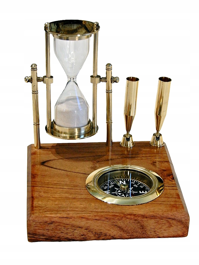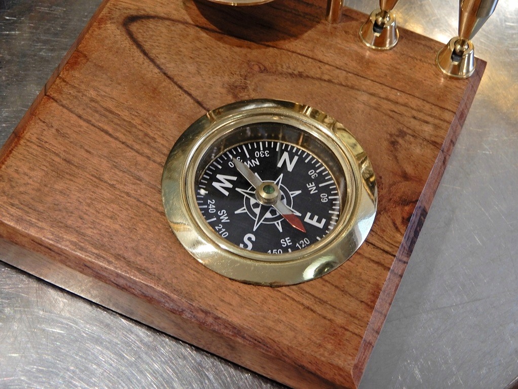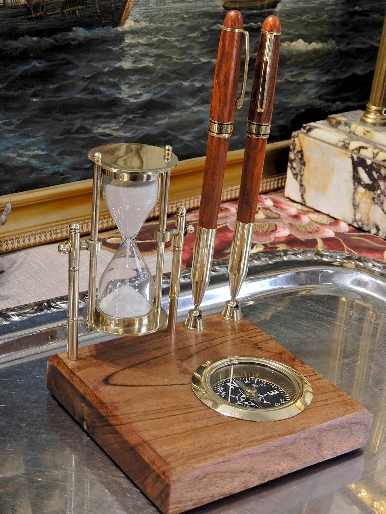 Гарний настільний набір - латунний глобус, компас, вкладиші для 2 ручок на дерев'яній основі.