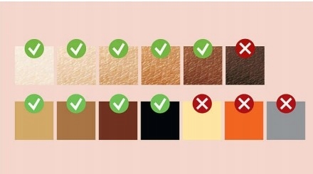 IPL вимагає контрасту між пігментом кольору волосся та пігментом тону шкіри, тому він працює на темно-русявому, каштановому та чорному кольорах волосся та тонах шкіри від світлого до темно-коричневого (I-V).