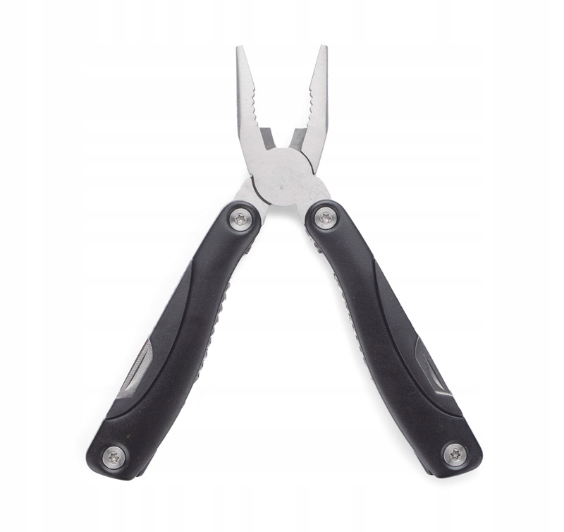 Інструмент-це набір, що складається з багатофункціонального інструменту та панелі інструментів. Особливості інструменту: плоскогубці, різак, гладкий лезо ніж, пила, плоска і перехресна викрутка, файл, банка та відкривача для пляшок. Оснащений замком усіх елементів. Функції вибуху: ніж, плоска і перехресна викрутка, відкривача для пляшок, ліхтарик. Обидва гаджети були упаковані в екологічну картонну коробку. Розміри багатофункціонального інструменту 158 x 68 x 23 м, розміри ключового кільця 30 x 60 x 18 мм