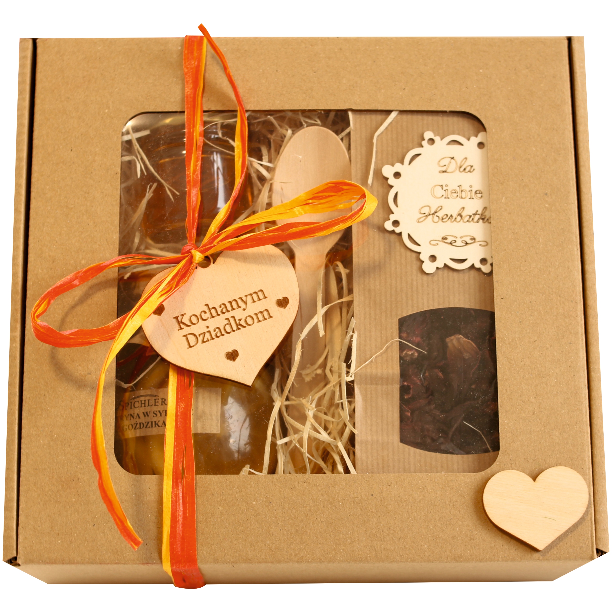 Повірте нам, ми дбаємо про найменші деталі - ви можете побачити доказ на фотографії нижче. Дерев'яна підвіска з написом "Дорогим бабусям і дідусям" і дерев'яним сердечком винятково збагачує зовнішній вигляд кошика, а головне підкреслює, для кого призначений кошик. Завдяки цьому ви подаруєте ідеальний подарунок, який, безсумнівно, зачарує вашу бабусю чи дідуся.