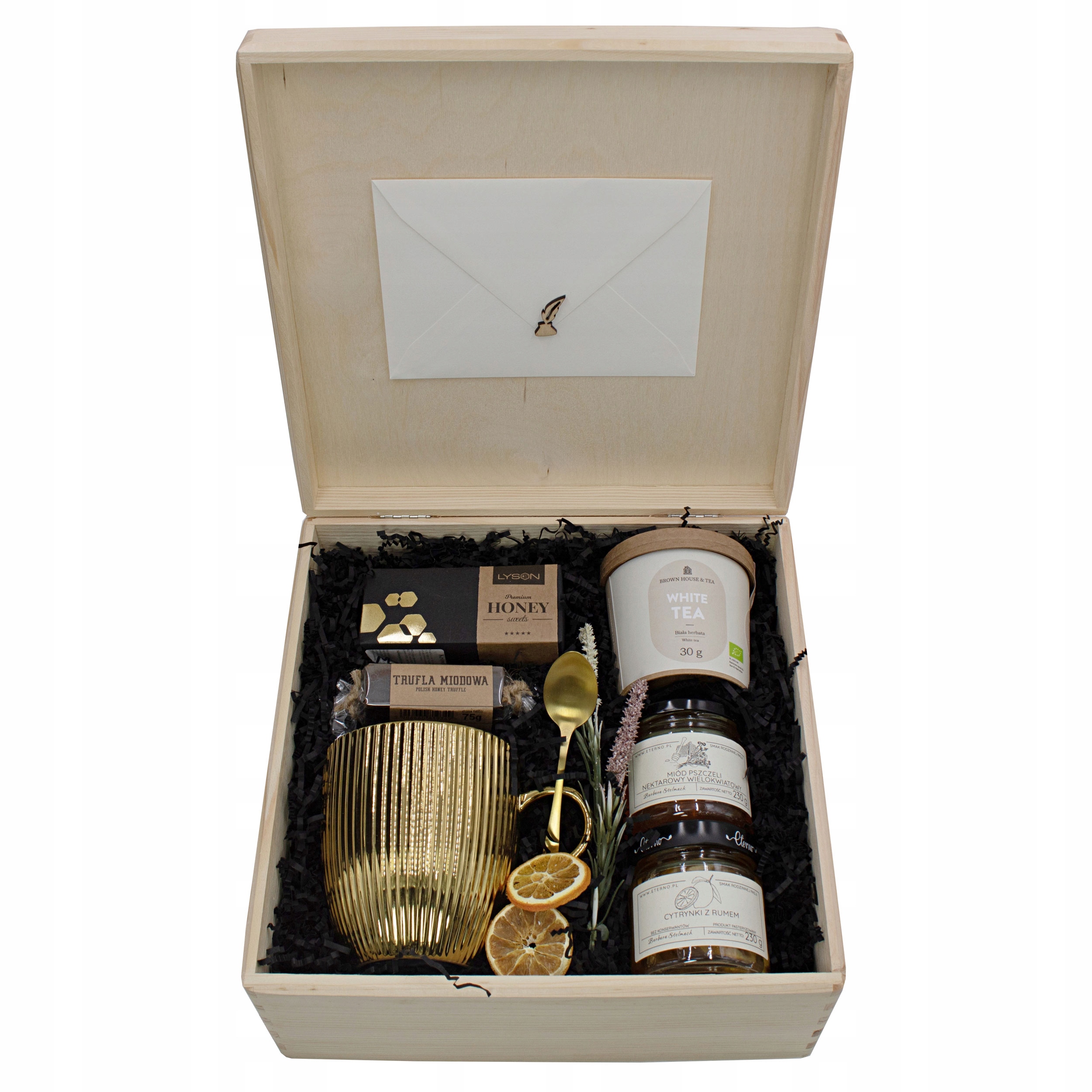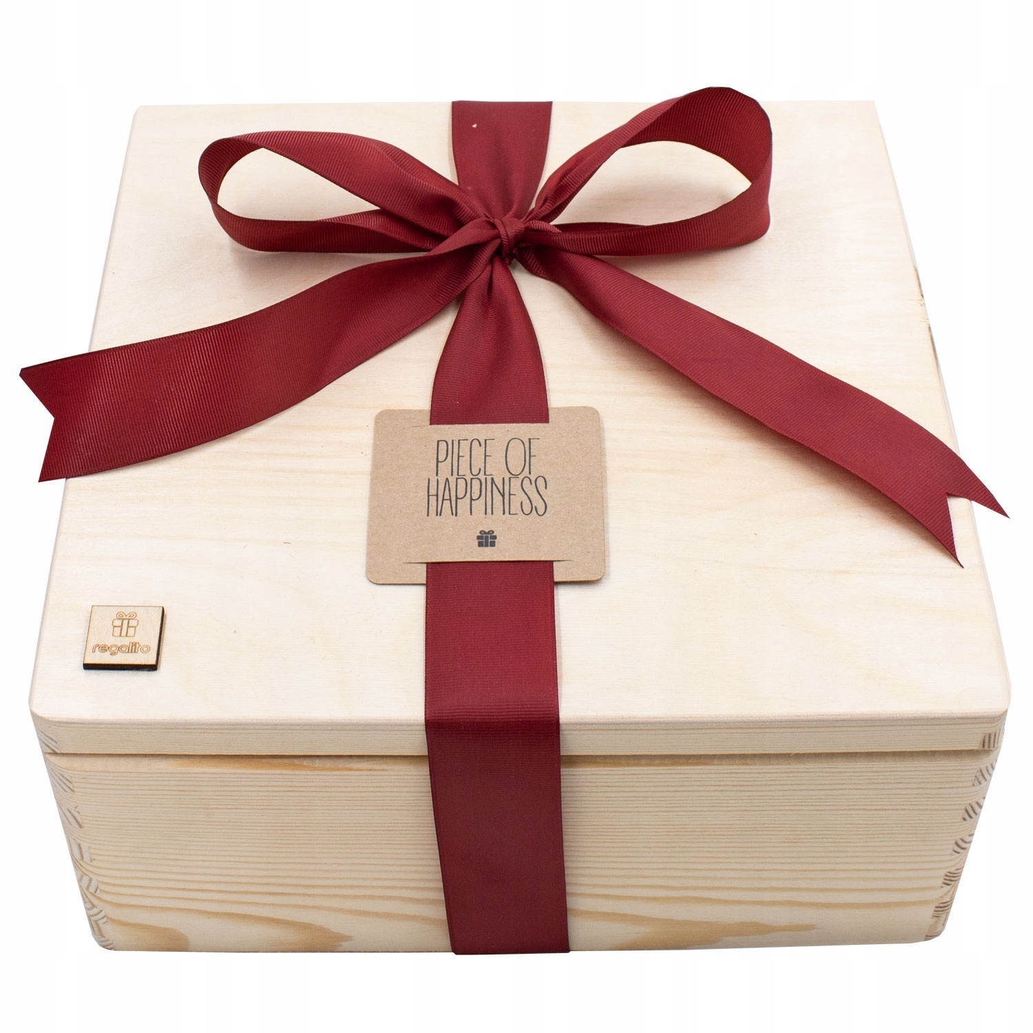 Набір товарів у дерев'яній подарунковій коробці з можливістю персоналізації.