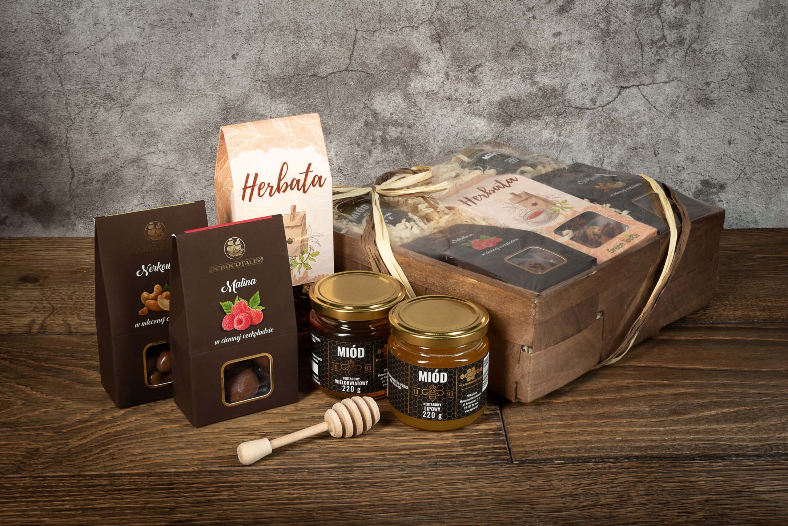 ПОДАРУНКОВИЙ КОШИК набір меду, горіхів і сухофруктів, чаю