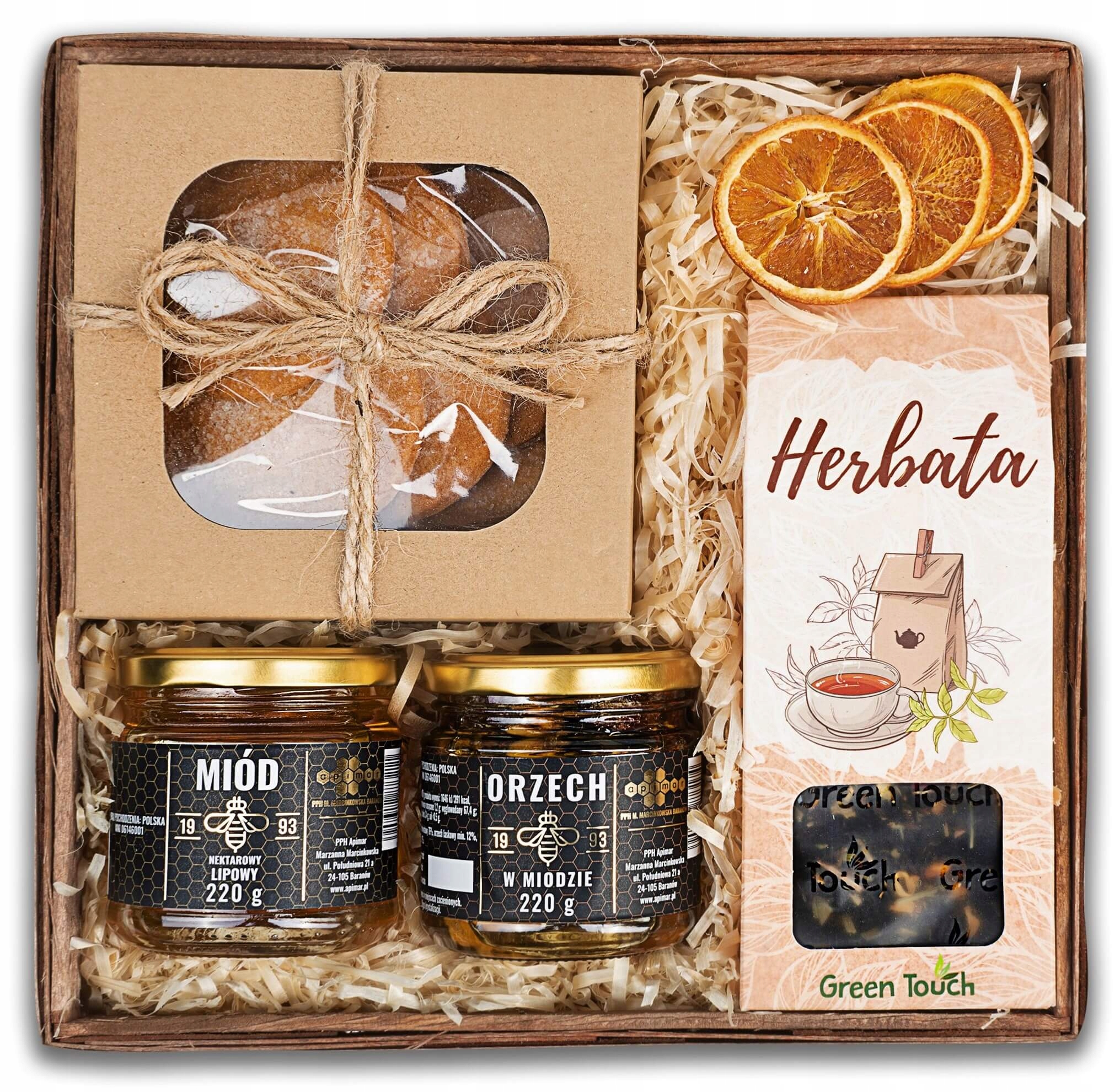 Подарунковий кошик із чаєм, медовим печивом, медовими горіхами та липовим медом