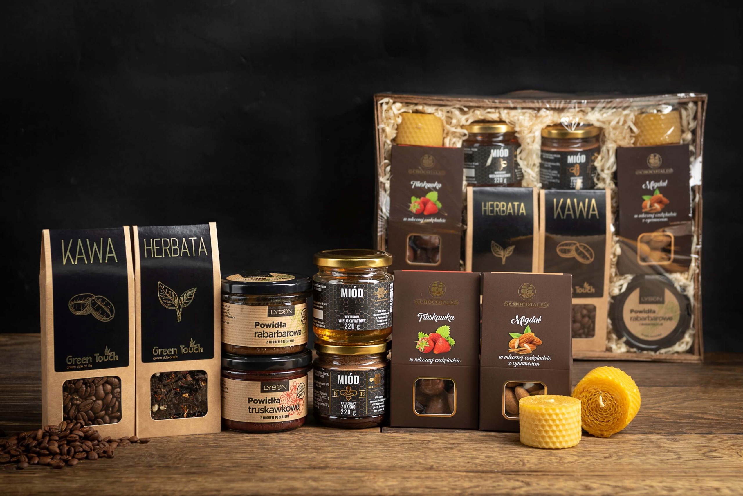 Подарунковий кошик подарунковий набір, подарункова кава, мед, свічка