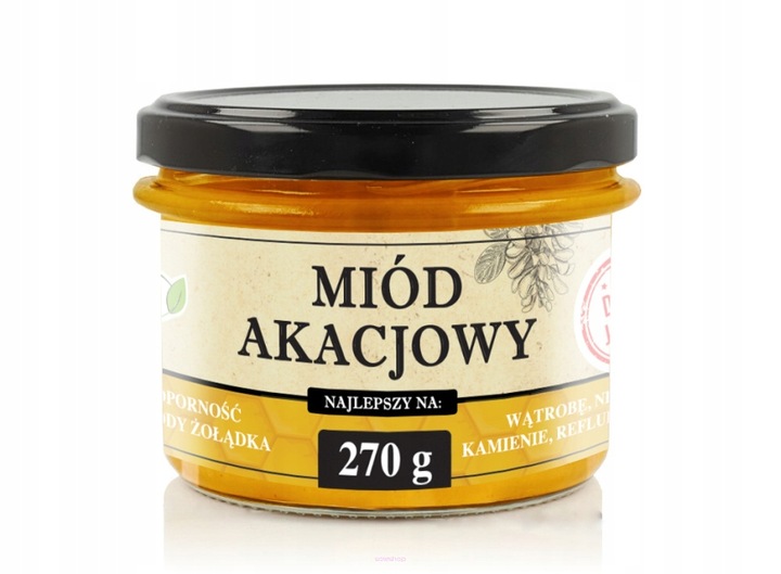 Однак найбільшою групою сполук у меді є вуглеводи: глюкоза та фруктоза. Він містить органічні кислоти, такі як глюконова, яблучна та лимонна, які найбільше впливають на смак акацієвого меду.