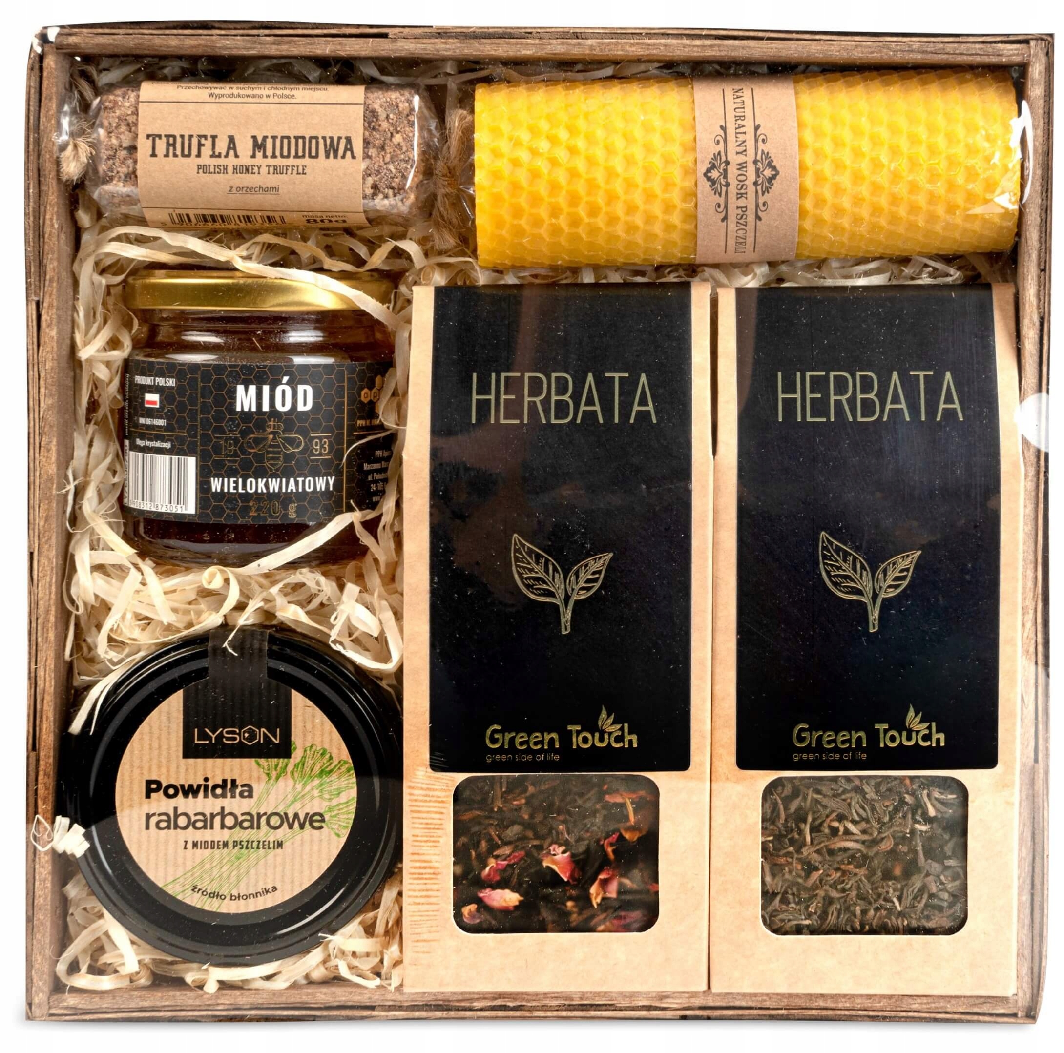 Подарунковий набір містить медові страви та чудові солодощі та закуски