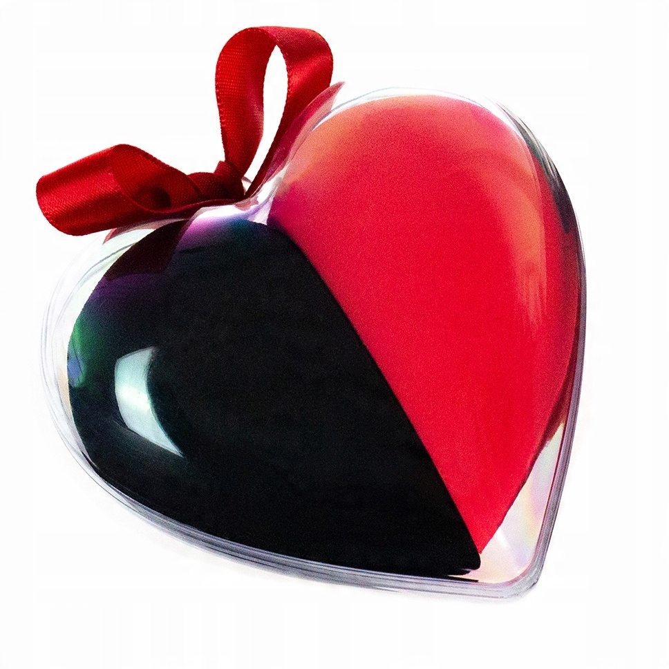 Ціле упаковане в пластикову коробку з стрічкою, укладеною серцем і в коробку.