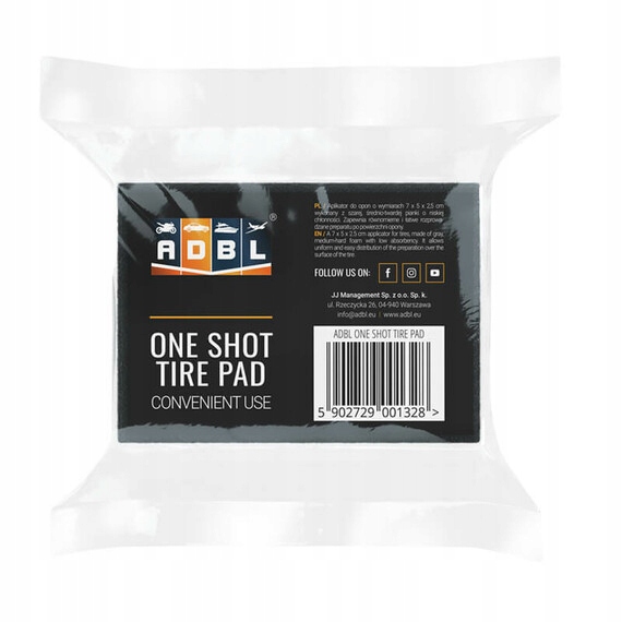 Аплікатор для шин розміром 7 x 5 x 2,5 см із сірої піни середньої жорсткості з низькою абсорбуючою здатністю. Забезпечує рівномірний і легкий розподіл препарату по поверхні шини.