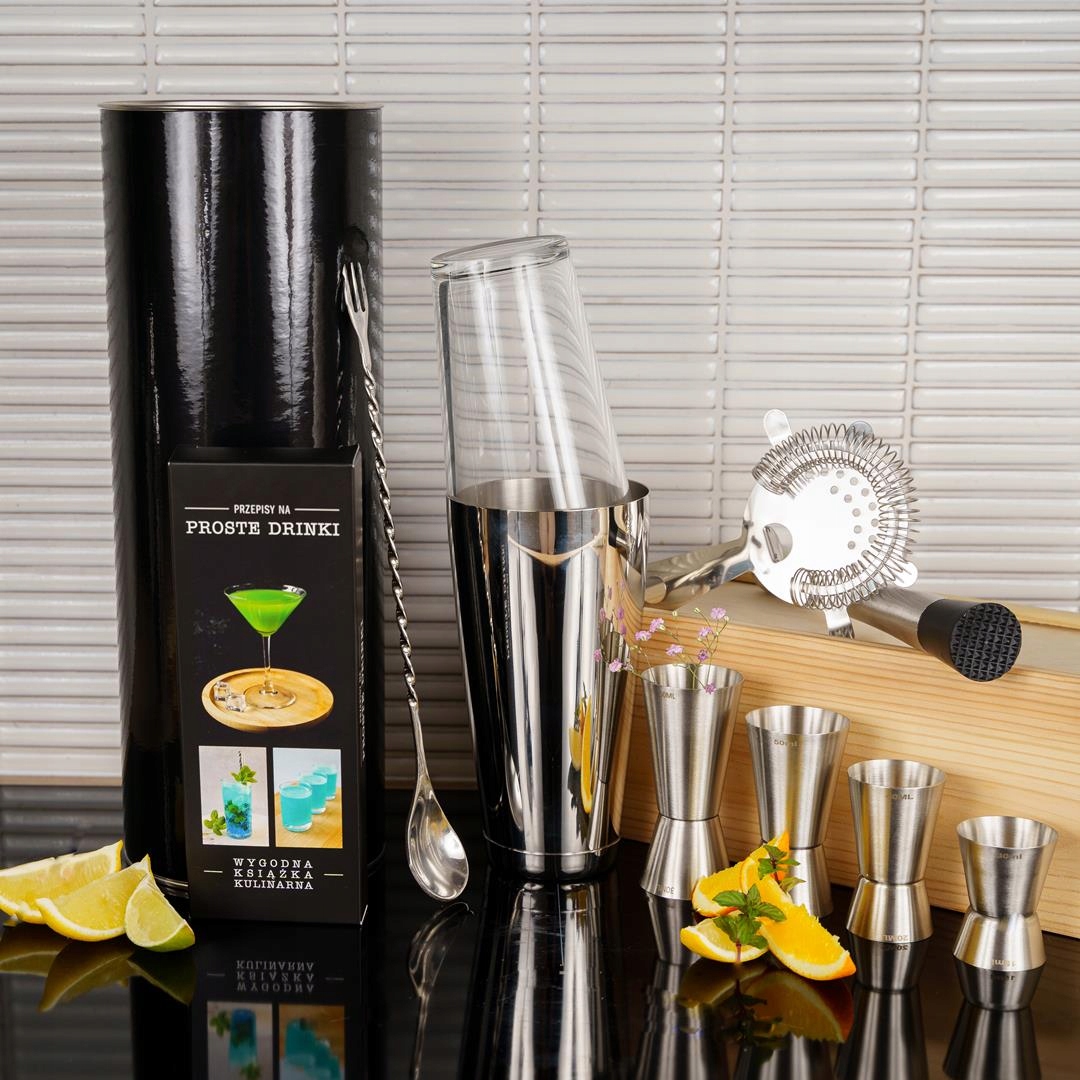 Набір бармена Boston із шейкером Boston — це набір із 9 аксесуарів для бармена, необхідних для приготування напоїв вдома. Цеідеальний набір для початківців. Він упакований в елегантний чорний тюбик.