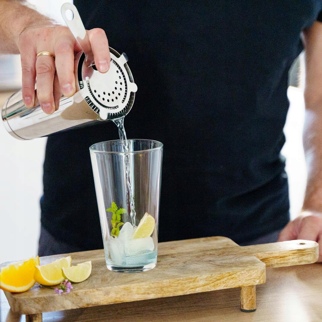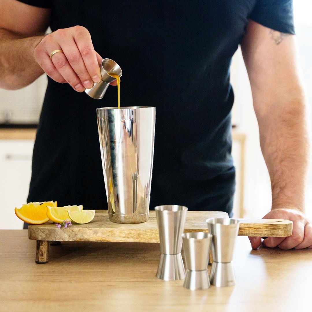 - шейкер Boston (склянка + кухоль) - це найпопулярніший тип шейкера, який ви можете знайти в кожному бар, домашній і професійний. Складається з металевої кухля і скляної склянки. Завдяки місткості ви можете готувати напій для кількох людей одночасно, що економить ваш час під час вечірки. Бостонський шейкер також дуже ефективний. Збовтуючи напій у прозорому стакані, ви можете побачити, як змішуються інгредієнти