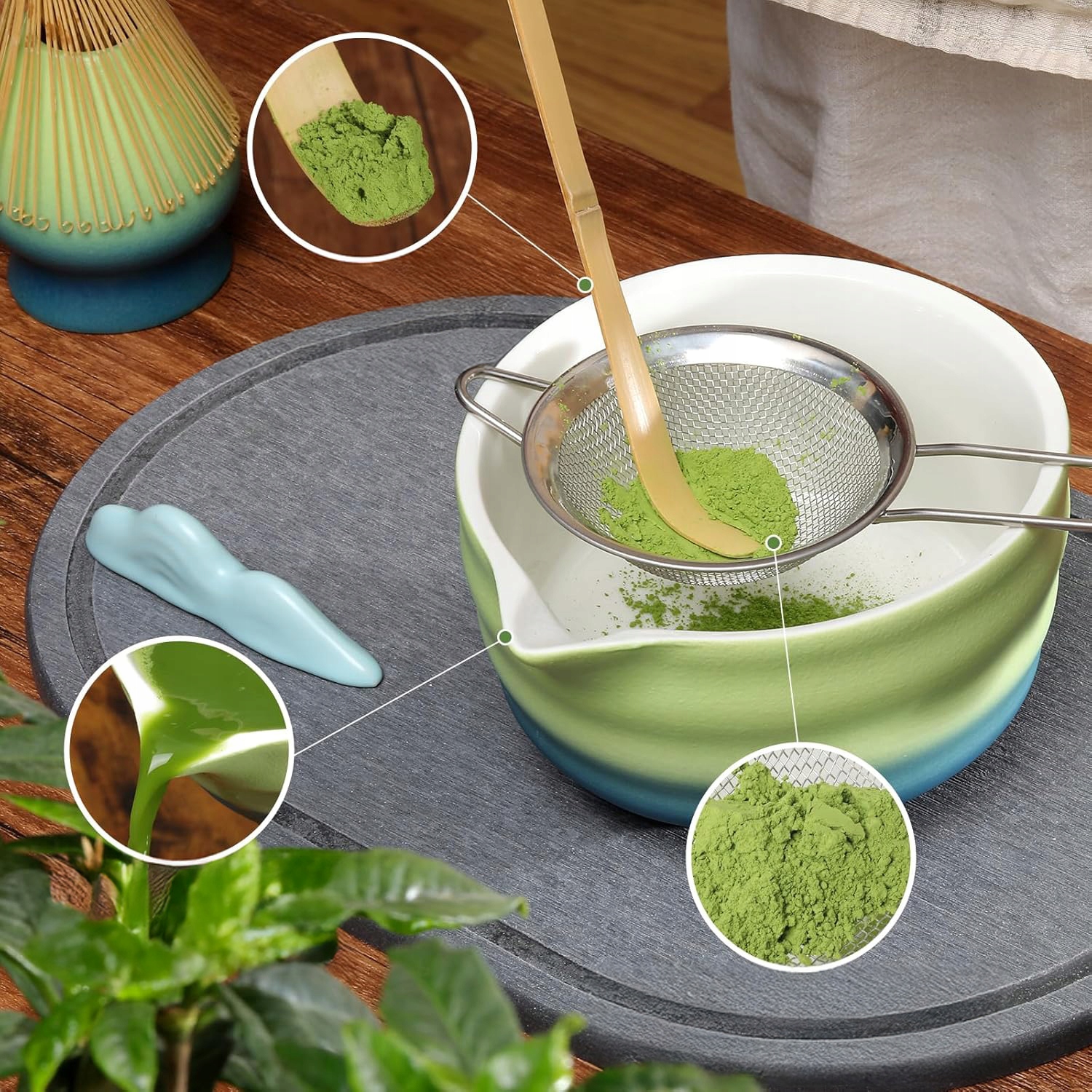 🍵🍵 ЗРУЧНІ АКСЕСУАРИ: фільтр допомагає відфільтрувати домішки для грудкуватого, шовковистого матча, а ложка ретельно виготовлена, щоб забезпечити потрібну кількість порошку матча щоразу, дозволяючи вам варити чудовий напій матча в різних пропорціях. Щоб очистити, просто промийте водою, висушіть і зберігайте в прохолодному сухому місці.