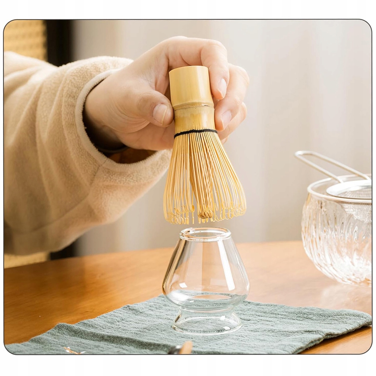 ✅【Набір із 7 предметів】Пакет включає 1 миску для матчі, 1 рушник, 1 скляний чайний набір, 1 стакан, 1 чайну ложку, 1 мішалку, 1 ситечко з ручкою.