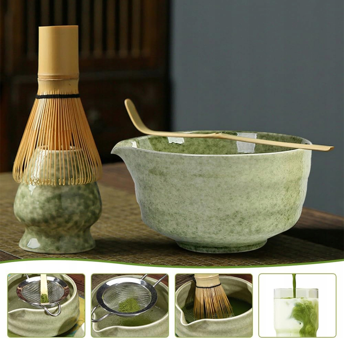 ПОДАРУНКОВИЙ НАБІР ЧАЮ МАТЧА ЧАШАКУ МАТЧА З БАМБУКУ КЕРАМІКА