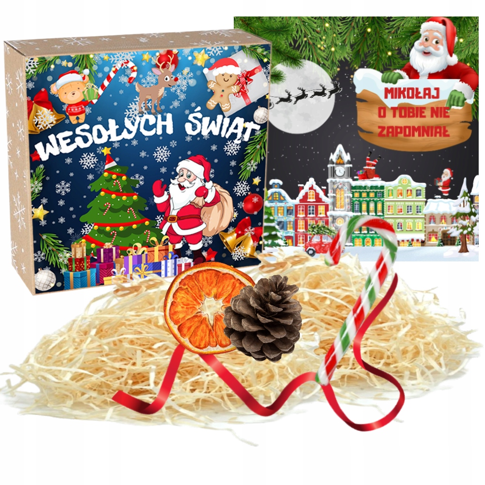 - Різдвяна подарункова коробка додатково наповнена декоративним високоякісним сіном.