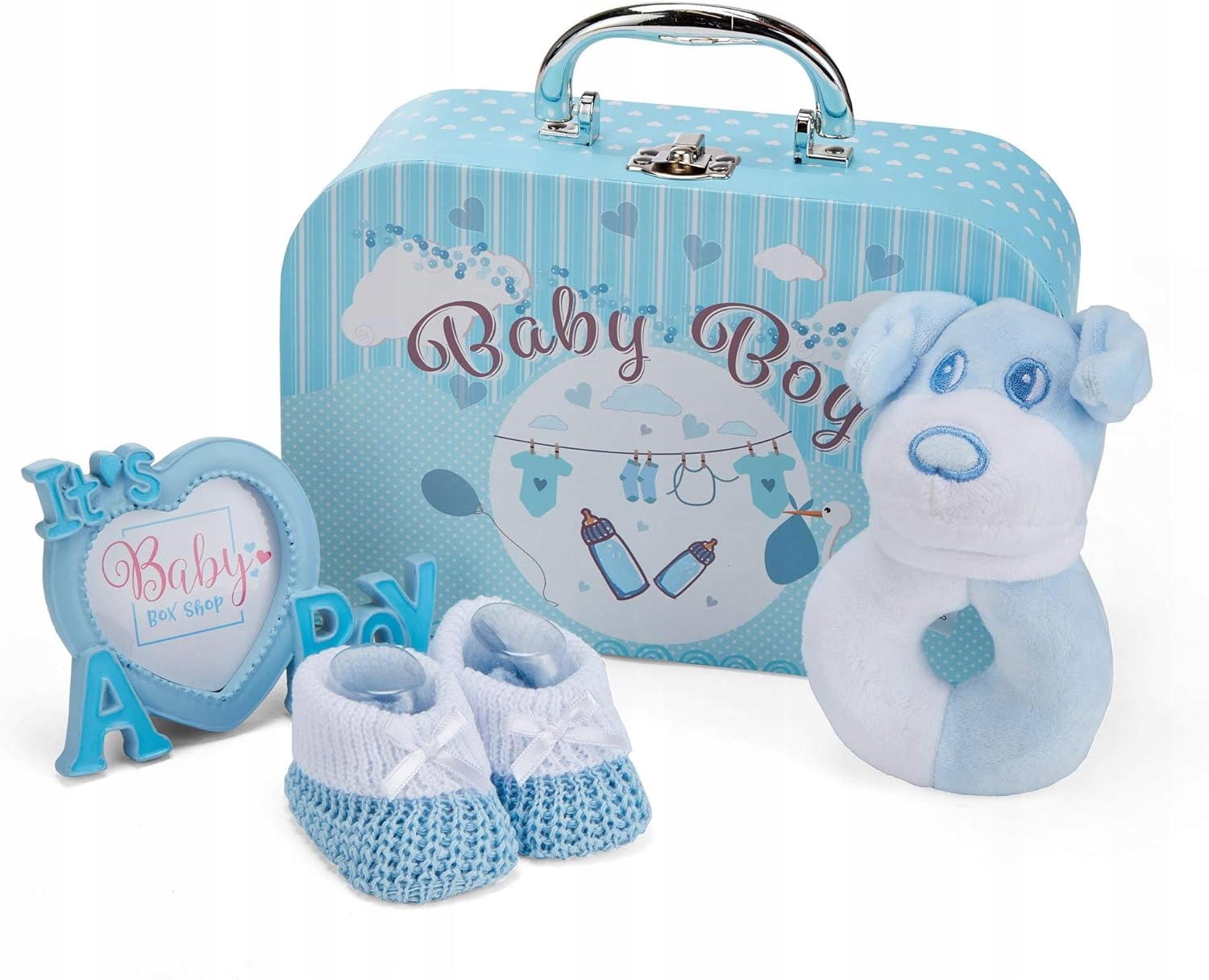 Уявіть, що батьки радості відчують, коли побачать цю коробку спогадів для новонародженого хлопчика у вигляді валізи. Вони будуть в захваті, коли відкриють коробку і побачать його вміст - подарунковий набір для дитини.