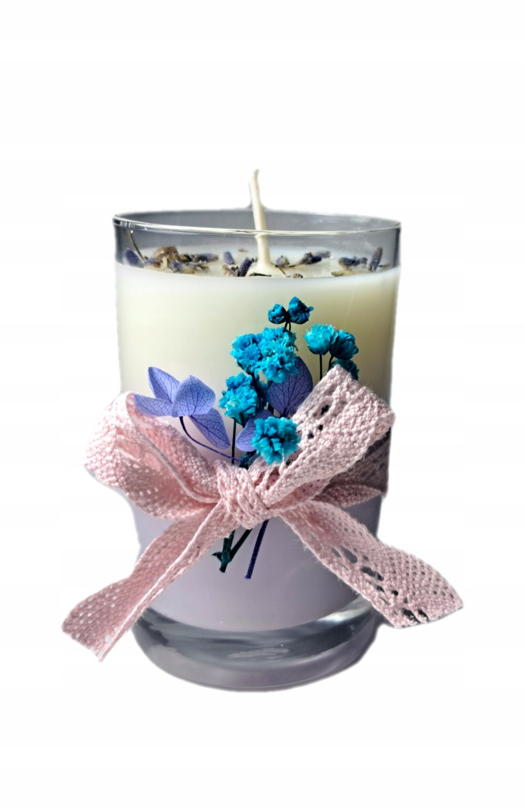 Ароматична свічка : виготовлена вручну зі 100% соєвого воску, упакована в фольгу та зав’язана бантом. Висота 8 см, ширина 5 см
