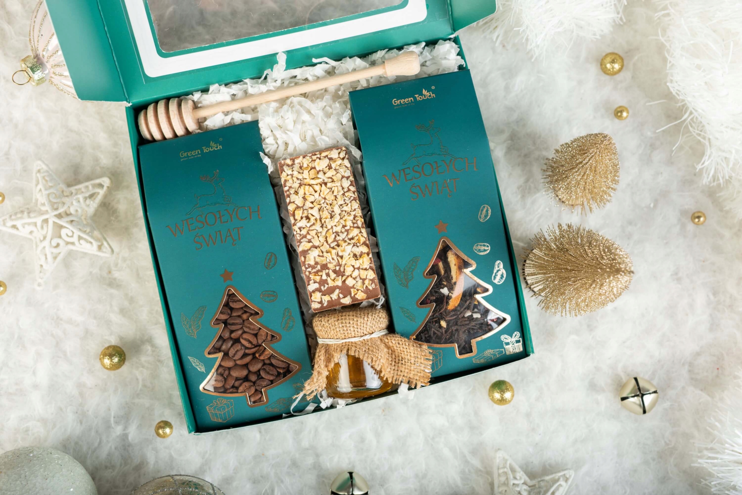Подарунок до Дня Святого Миколая, Різдвяний набір у коробці, кава, чай, солодощі