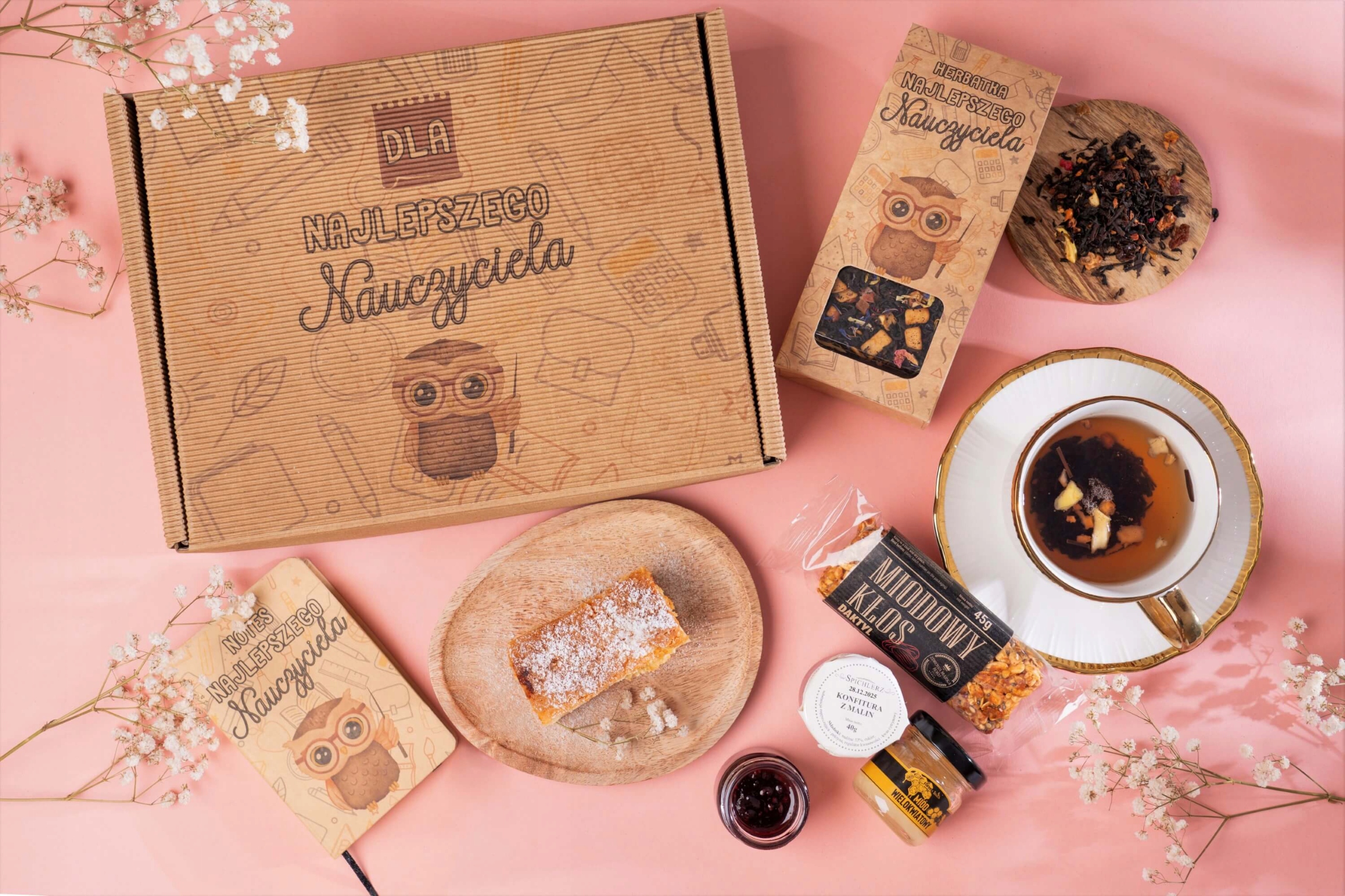 подарунковим набором, повним продуктів Kraft з мануфактур у цікавому графічному дизайні, подарунок, ідеальний для кожного вчителя
