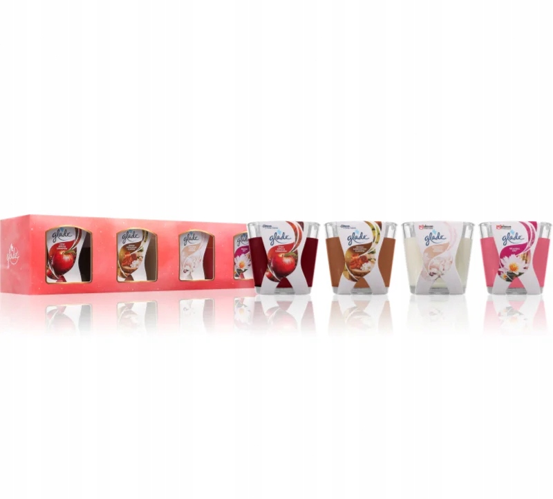 Подарунковий набір GLADE, 4x70 г, Подарункові набори Аромати для дому, Подаруйте своєму дому гарний аромат або порадуйте своїх близьких. Подарунковий набір GLADE — запорука успіху в обох випадках. Правильно підібраний ароматизатор заспокоює і дарує гарний настрій, роблячи будь-яке приміщення комфортним і затишним. Властивості: дарує гарний аромат усьому приміщенню, ідеальна ідея для подарунка Вміст набору: Ароматична свічка GLADE Cozy Apple & Cinnamon 70 г GLADE Sensual Sandalwood & Jasmine ароматична свічка 70 г GLADE Romantic Vanilla Blossom Ароматична свічка 70 г GLADE Relaxing Zen ароматична свічка 70 г Склад: на основі ефірних олій Спосіб застосування: Поставте свічку на поверхню, стійку до температурного впливу. Вони не повинні горіти довше 4 годин. Ніколи не дозволяйте свічці догоріти до кінця. Ніколи не залишайте палаючу свічку без нагляду або поблизу легкозаймистих предметів. Зберігати в недоступному для дітей та домашніх тварин місці. Рекомендується, щоб свічка горіла хоча б до тих пір, поки не розтане весь верхній шар. Це запобіжить утворенню порожнин у воску. Щоб забезпечити оптимальне горіння, рекомендується регулярно обрізати гніт до потрібної довжини.