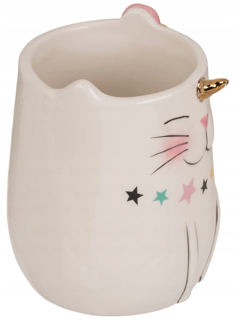 Керамічна скарбничка у вигляді красивого білого кота-єдинорога з райдужним хвостиком. Ідеальна скарбничка для дівчини, яка любить цих міфічних тварин. Скарбничка з замком на дні. Ідеальний продукт для подарунка. Упакована в картонну коробку.