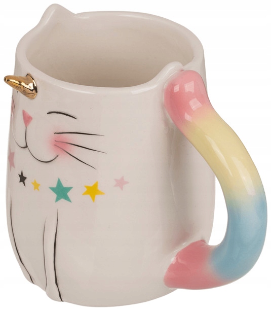 Весела і барвиста чашка-єдиноріг із золотим рогом. Райдужне вушко та усміхнене обличчя змушують кожного, хто користується цією чашкою, відчувати, що він дивиться на світ крізь рожеві окуляри ;)