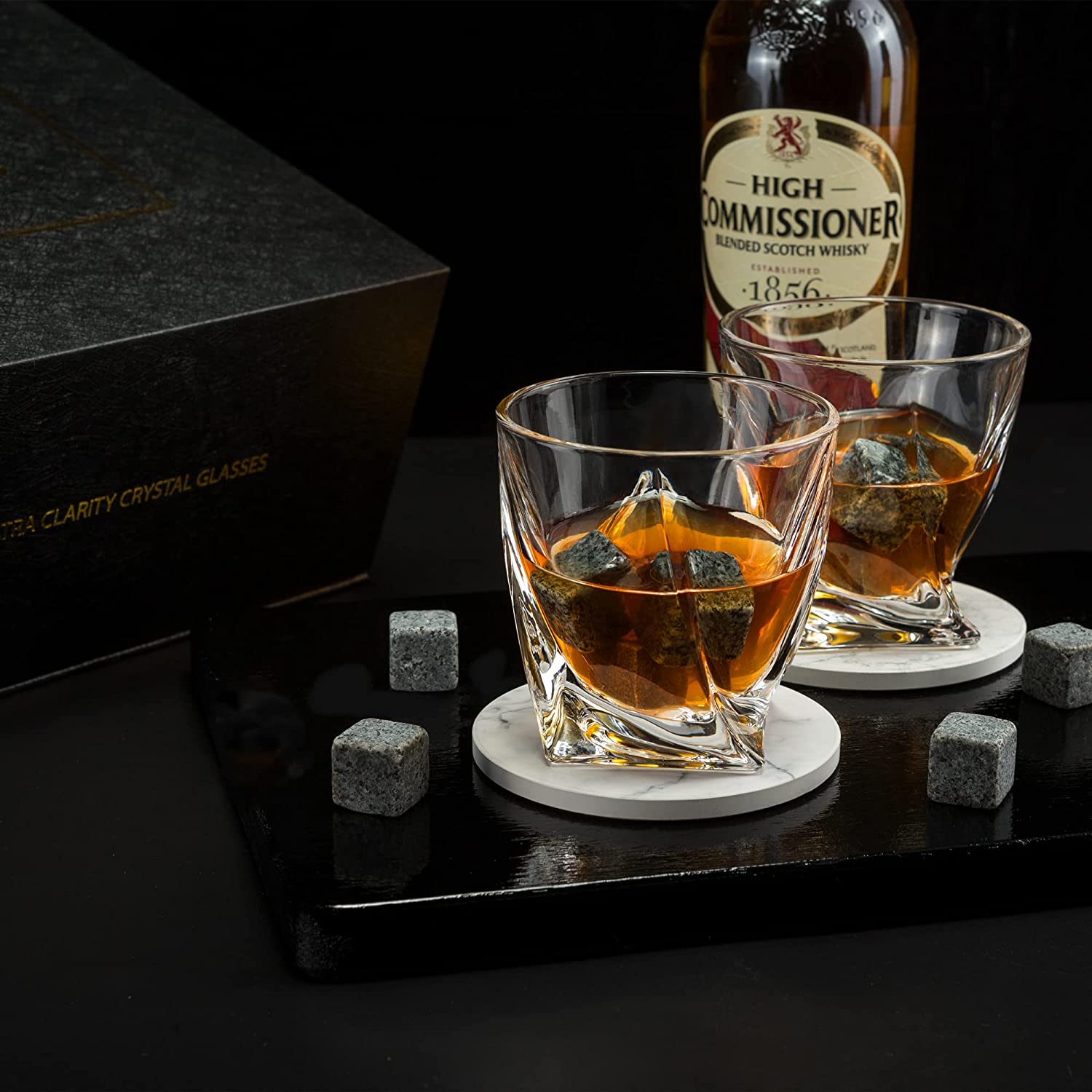- ІДЕАЛЬНА КОМБІНАЦІЯ ДЛЯ ЗБЕРЕЖЕННЯ СМАКУ - Наші качани для віскі виготовлені зі 100% натурального чистого граніту. Вони розроблені, щоб зберегти ваш віскі прохолодним, щоб ви могли насолоджуватися улюбленими напоями, не розбавляючи їх смак льодом. Уявіть собі приємне відчуття у вашій руці, коли ви п’єте віскі, скотч, бурбон, коктейль та інші алкогольні напої