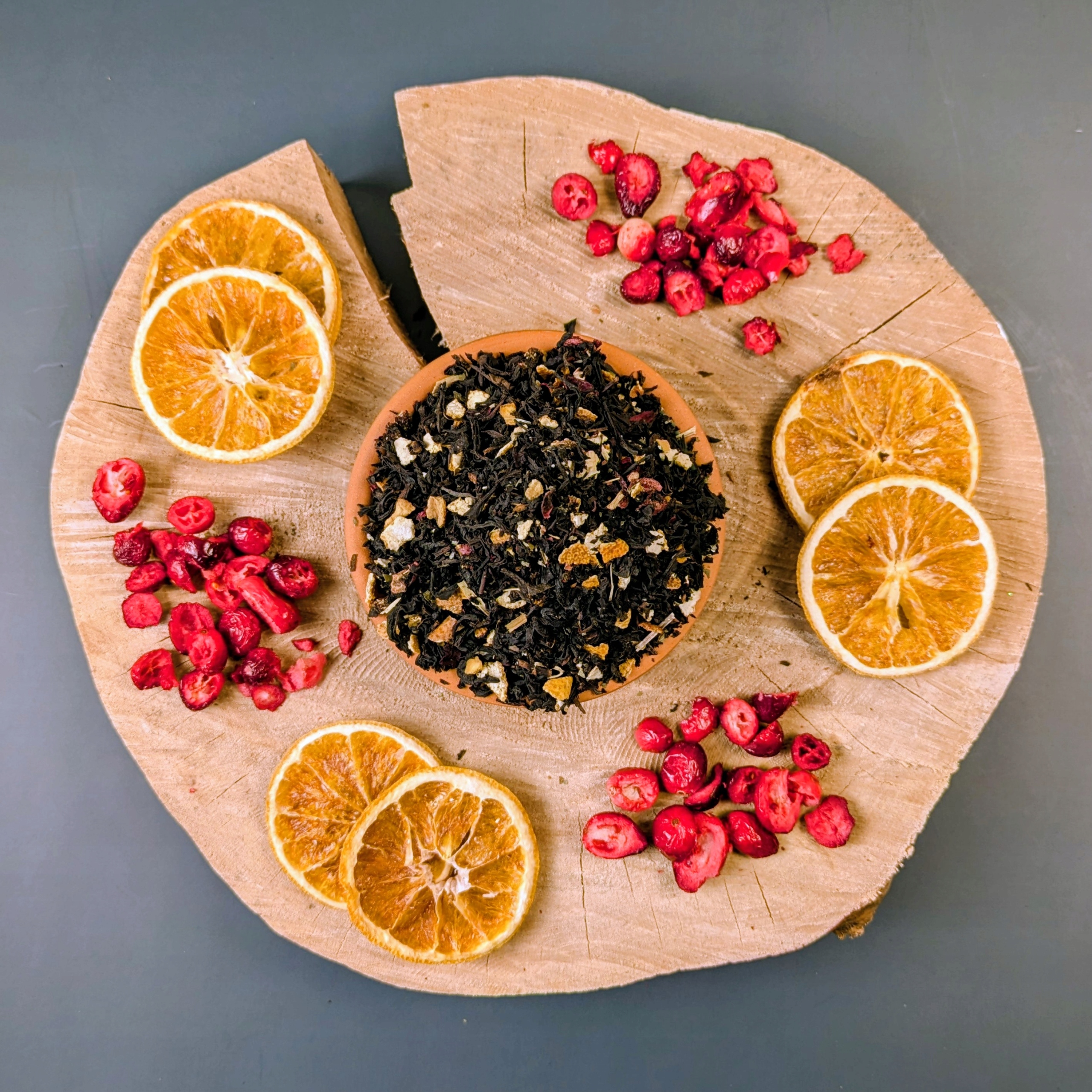 Інгредієнти:Ассам ФОП чорний чай, гібіскус, цедра апельсина, ліофілізована журавлина, лист ожини, аромати, ліофілізований гранат, квітка граната.