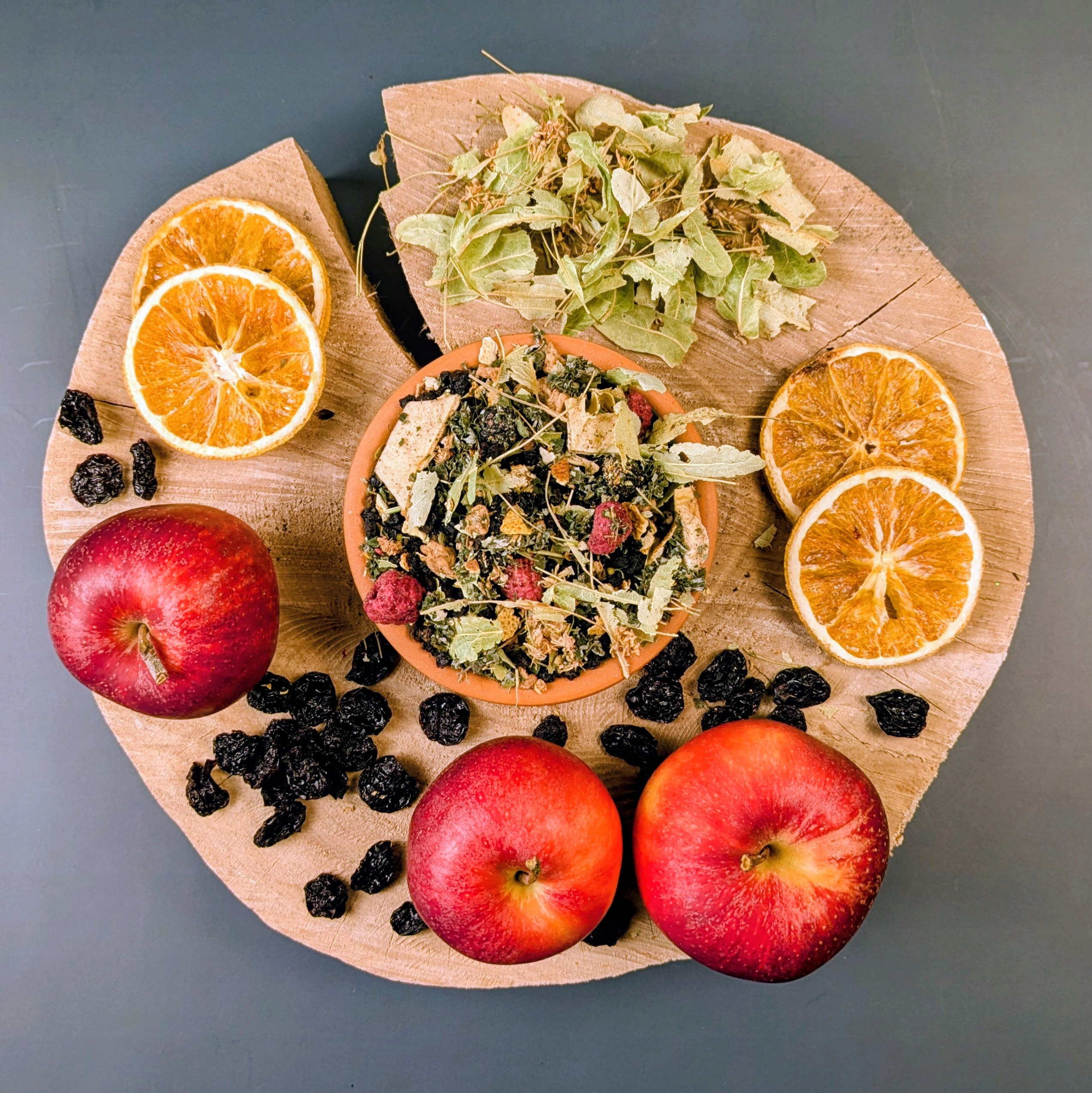 Склад: бузина, вишня сушена, кубики яблука, цедра апельсина, цвіт липи, листя малини, сублімована. малина
